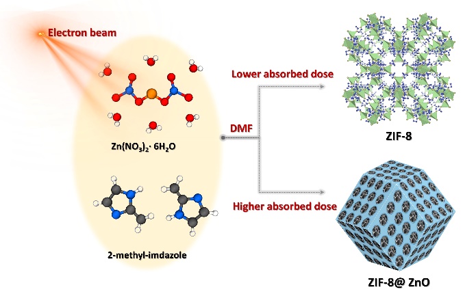 图1 高能电子束辐射合成MOF的示意图
