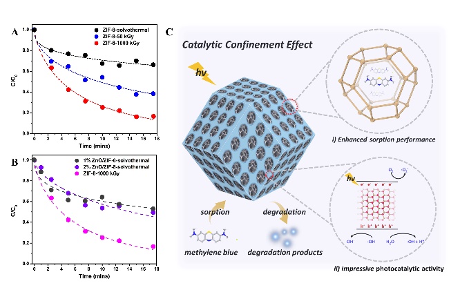 本工作首次将辐射化学与MOF合成两个不同领域有机结合在一起,进一步拓展了核技术的应用领域,为MOF的绿色合成提出了全新的思路。此外,该方法可以原位一步合成多级孔金属氧化物@MOF复合物材料,进而显著提升材料的光催化性能,在MOF及其复合物的合成中有良好的应用前景。