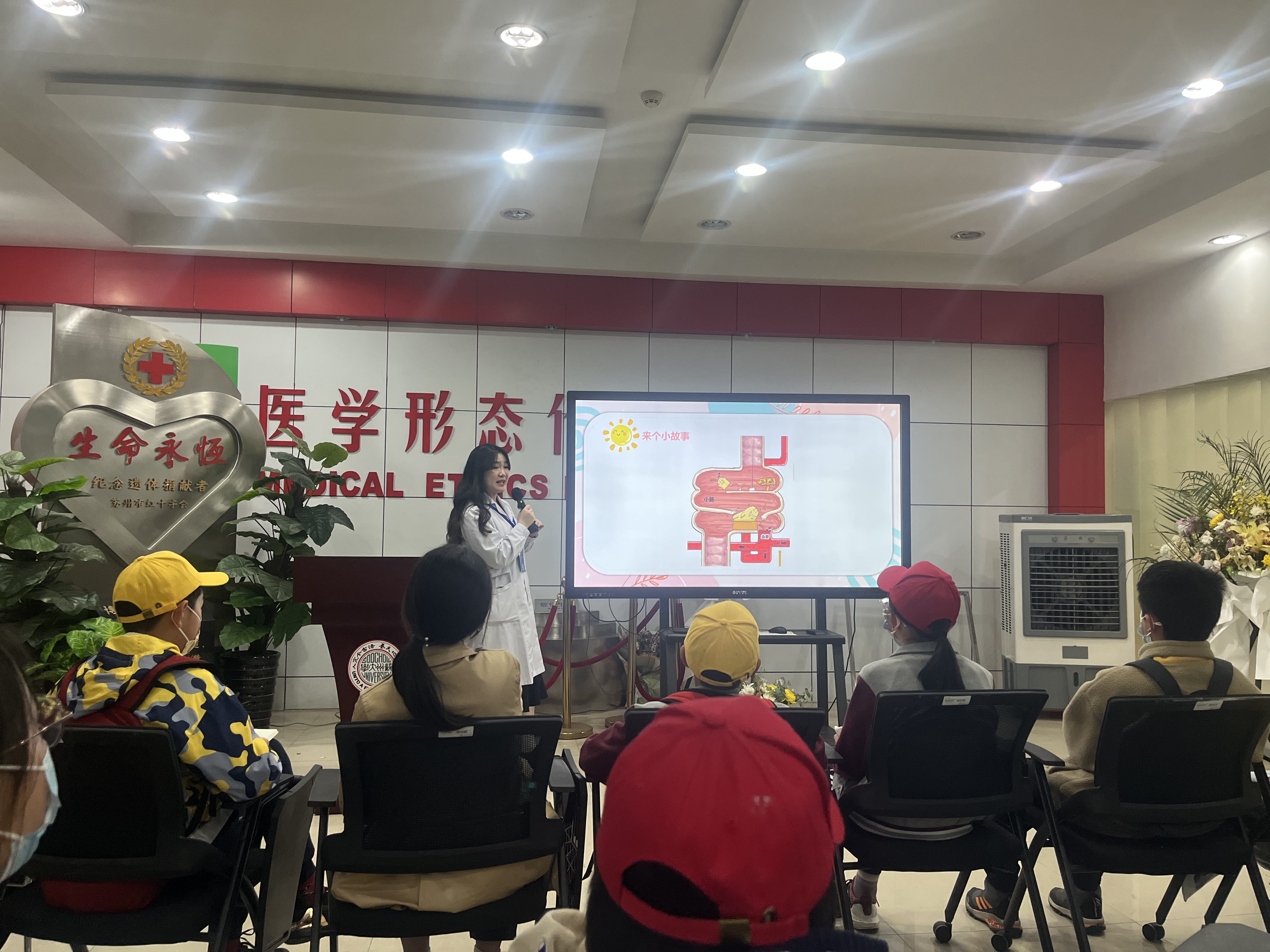 随后,活动分为三组,交叉参观了“两弹一星”精神及科学家精神展、核技术医学应用主题展、生命伦理馆、国重各中心实验室,感受科技创新前沿。段广新老师与鲁杰同学声情并茂地介绍了我国核工业发展历程,以及“两弹一星”科学家们背后的故事与精神,以及核技术在医学上的广泛应用。在生命伦理展馆,马彬老师用器官模型为孩子们细致的科普了消化器官的功能结构,刘雨桐同学为孩子们用漫画ppt的方式讲解了消化系统的组成和消化的过程。在国重实验室,盛道鹏老师介绍了核废物处理的相关前沿研究,刘胜堂老师带领同学们参观了大型计算机集群,李藏同学介绍了分子影像相关的知识。同学们纷纷感慨,神奇的核技术领域真的蕴含着无穷的奥秘,等着大家去探索!