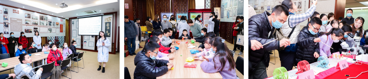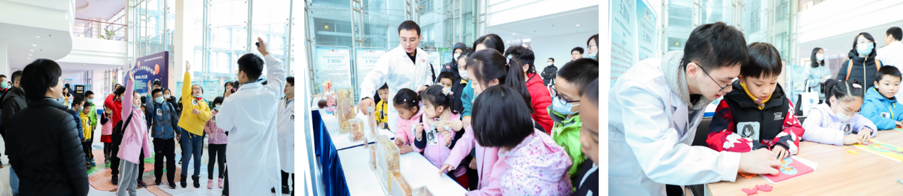 第三个活动主题是带领小朋友一起探索了“辐射与肠道损伤的微观世界”,展示了肠道切片、正常小鼠模型、果蝇、斑马鱼等丰富的实物,讲解员们带领小朋友们浏览世界和中国的核科学发展史,和小朋友一起学习了细胞的内部结构,了解了丰富多样的细胞器和它们的功能。小朋友们在讲解员的带领下自己动手用彩泥制作细胞,气氛十分活跃。