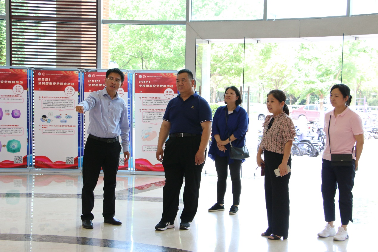 在医学楼大厅,王成奎书记向张志军副主席详细介绍了国重室积极响应新时代科普、科技两翼齐飞的号召,深入开展各类科普工作的情况。在参观近期展出的“建党百年创伟业,大国底气从核来”核科普主题展时,介绍了国重室大力弘扬“两弹一星”精神和核科学精神的思想主题。