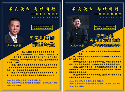 习近平总书记强调“科技创新”和“科学普及”是实现创新发展的两翼,要把“科学普及”放在与“科技创新”同等重要的位置。开展院士专家进校园活动是增强未成年人和青年学生群体科普获得感,提升民族科学素养的有益尝试。苏州大学放射医学与辐射防护国家重点实验室为积极响应国家及江苏省2019年“全国科普日”活动号召,于9月10日举办了“不负使命,与核行”弘扬核科学精神及应用科普系列活动—院士专家进校园科普讲座,在苏大独墅湖校区炳麟图书馆学术报告厅举行。本次活动特邀了二位国家杰青,分别是高明远教授作了题为“医学影像的前世今生”和王殳凹教授作了题为:“顶天立地—勇攀科研新高峰”的精彩报告。
