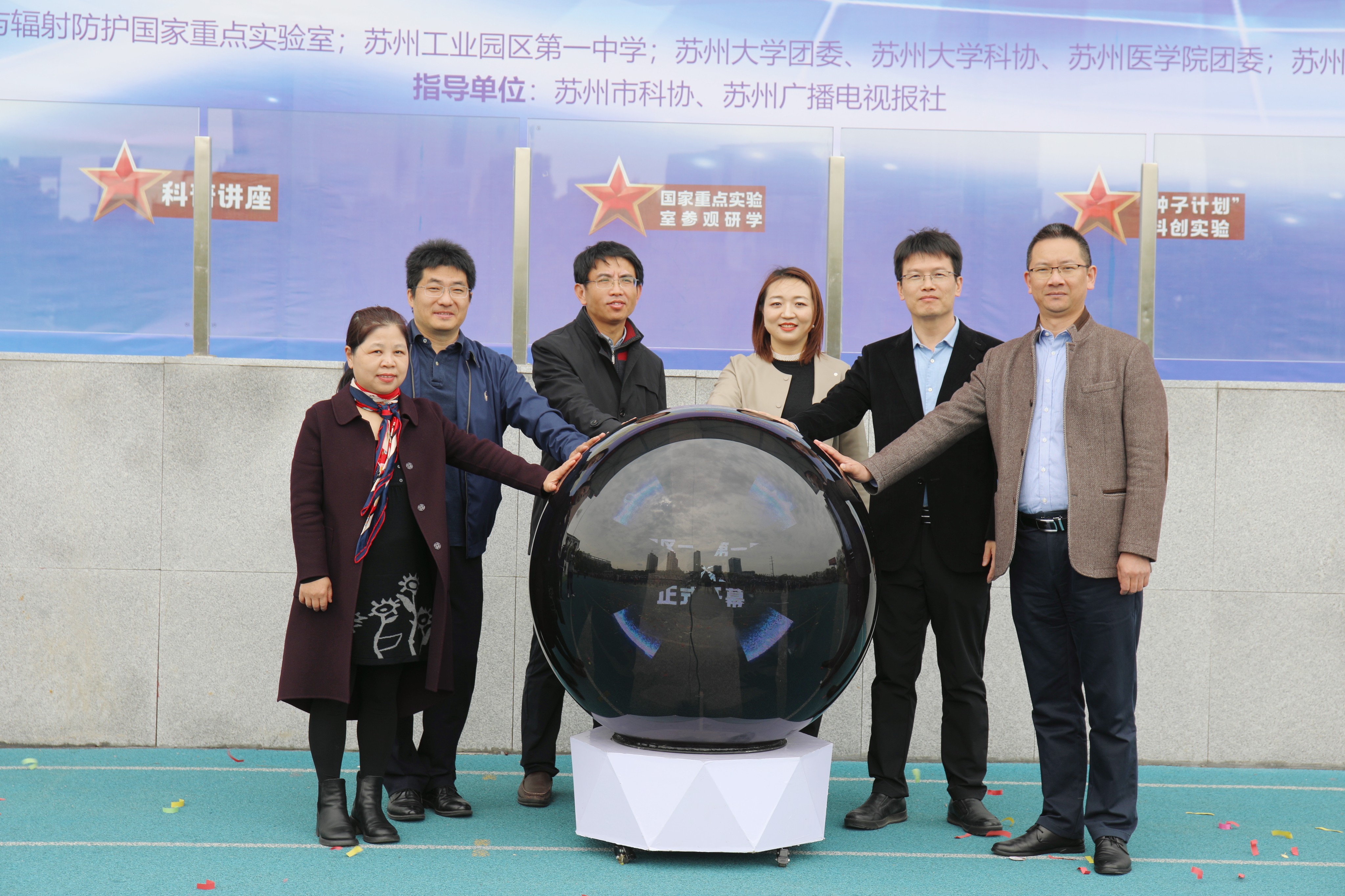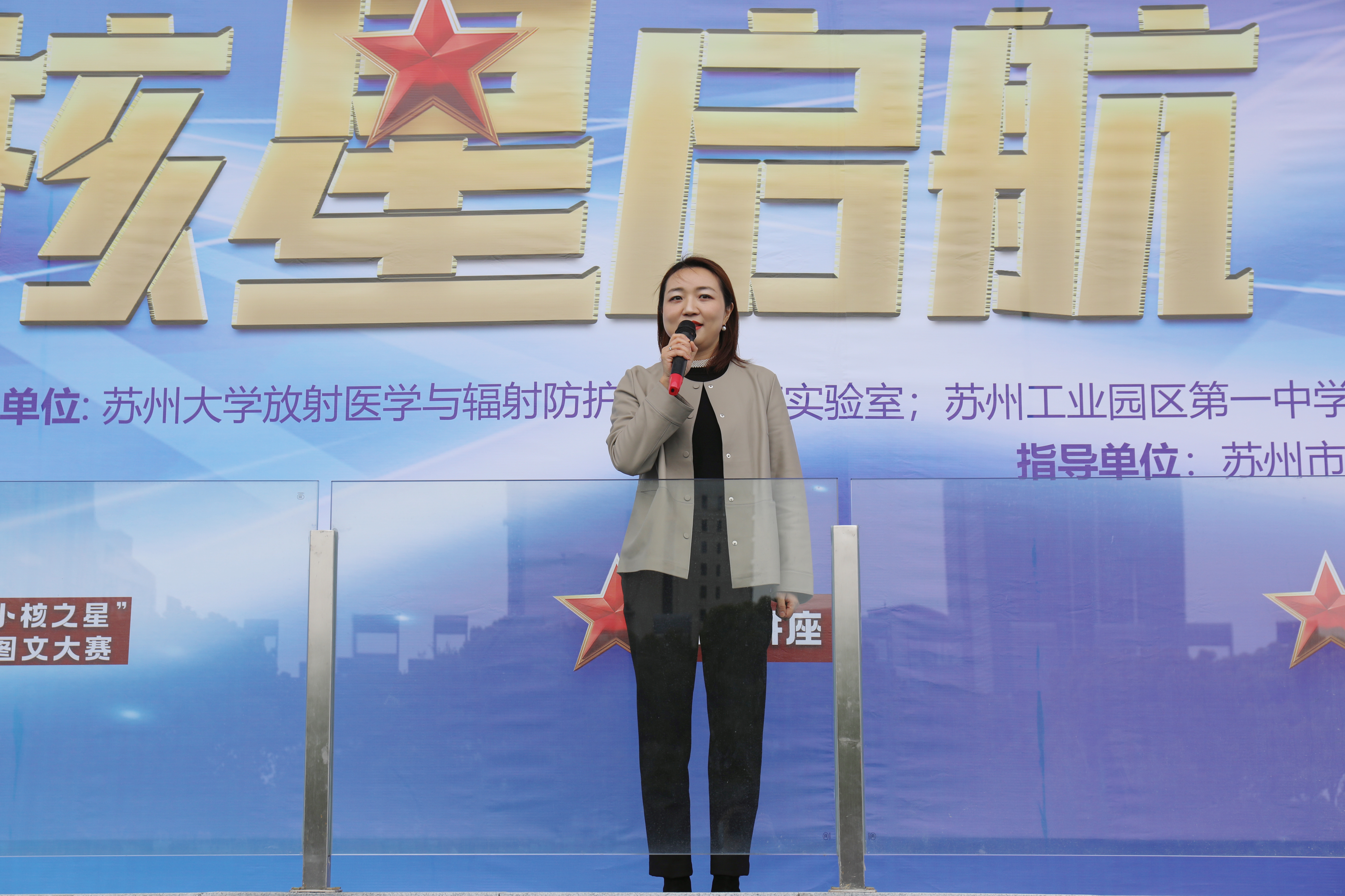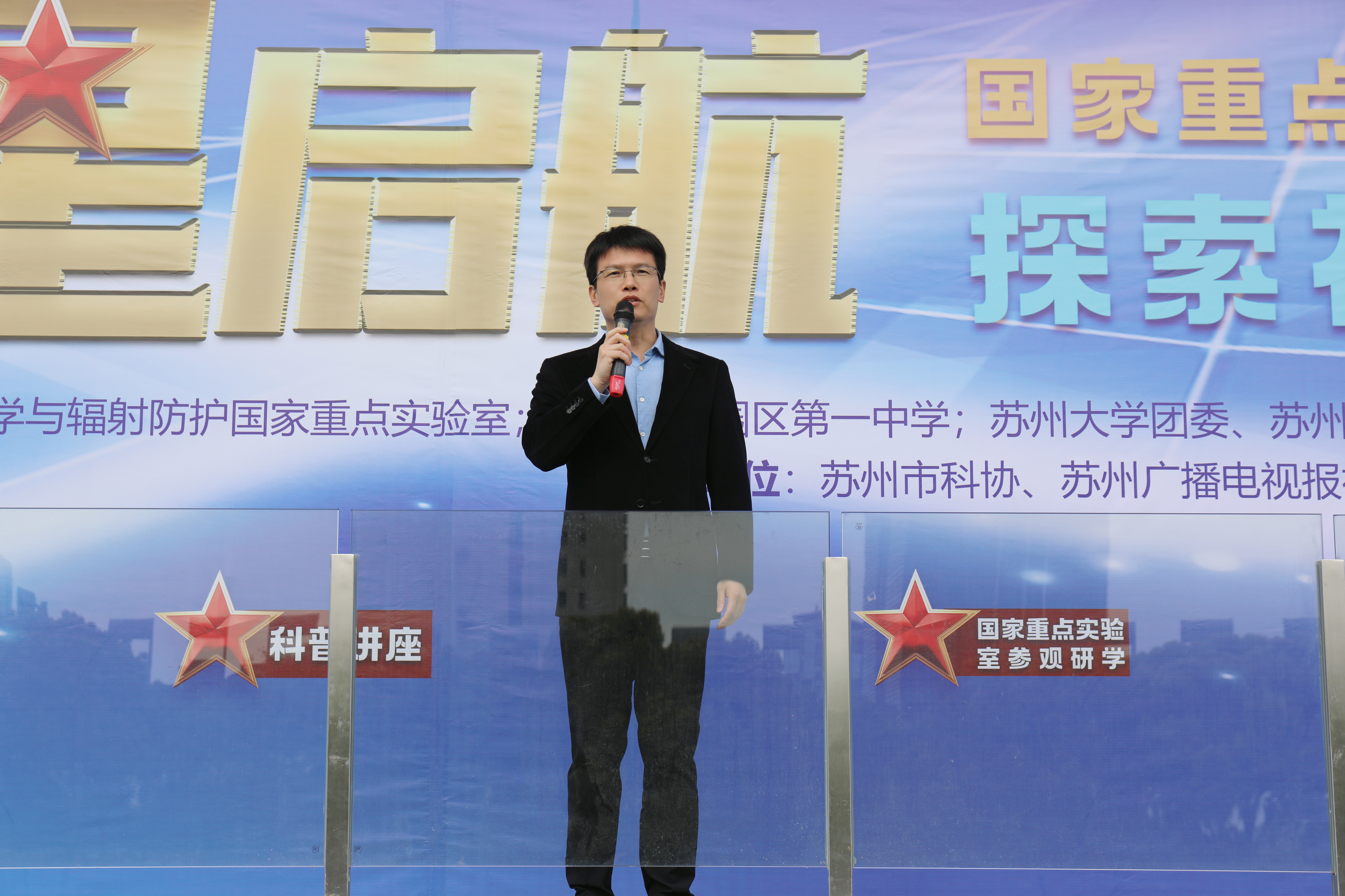 4月3日上午,由苏州大学放射医学与辐射防护国家重点实验室、苏州市工业园区第一中学共同主办的“核星启航”—国家重点实验室科学节系列活动在苏州工业园区第一中学隆重开幕,本次系列活动主要包括:小核之星科普图文大赛、院士专家科普讲座、科学小讲堂、“种子计划”科创实验、走进国重室等,系列活动将为期一个月。参加本次开幕式的有苏州工业园区第一中学校长赵小军,副校长王新奇,苏州大学苏州医学院党工委副书记、副院长孟玲玲,苏州大学放射医学与防护学院党委书记王成奎,国家高层次人才、苏州大学特聘教授胡士军、国重室综合办主任徐加英、科普骨干赵琳,工业园区第一中学1500余名师生共同参加。