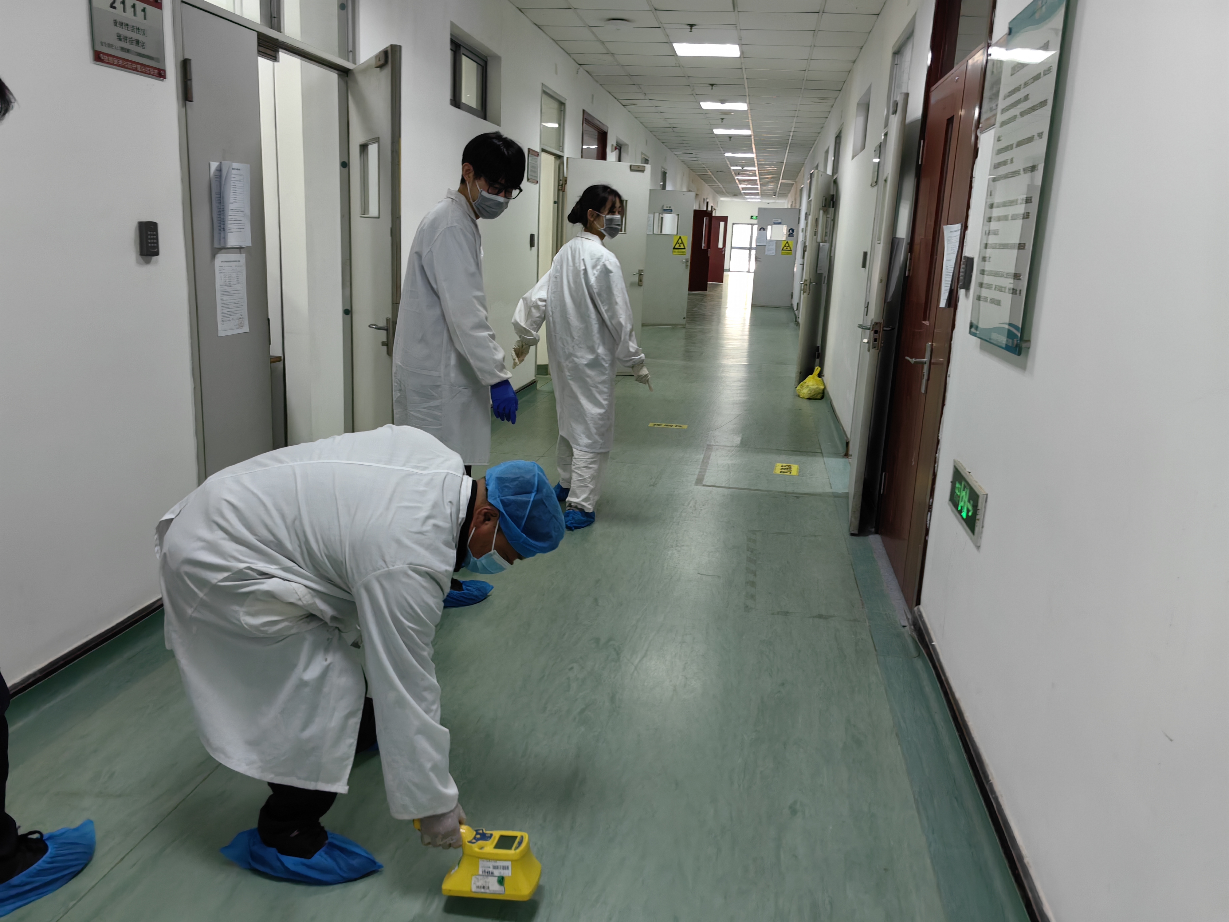 核应急小组成员火速赶赴事故现场,深入了解事故详情后,依据工作人员的活动区域展开全面细致检测,并妥善收集被污染的衣物,依规存放至废物库。
