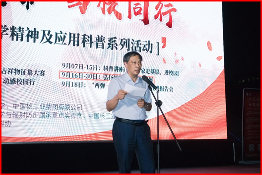 9月23日-24日,由苏州大学、中国核工业集团有限公司主办,放射医学与辐射防护国家重点实验室、中国核工业科技馆承办,苏州市科协协办的“不负使命与核同行”弘扬核科学精神及应用科普系列活动之露天电影展活动在苏州大学独墅湖校区顺利举行。出席本次活动苏州大学医学部党工委书记邹学海、放射医学与辐射防护副院长许玉杰、国家重点实验室综合办徐加英、赵琳、佟鑫、燕倩、学校师生及社会公众,共约470人。活动由许玉杰主持。