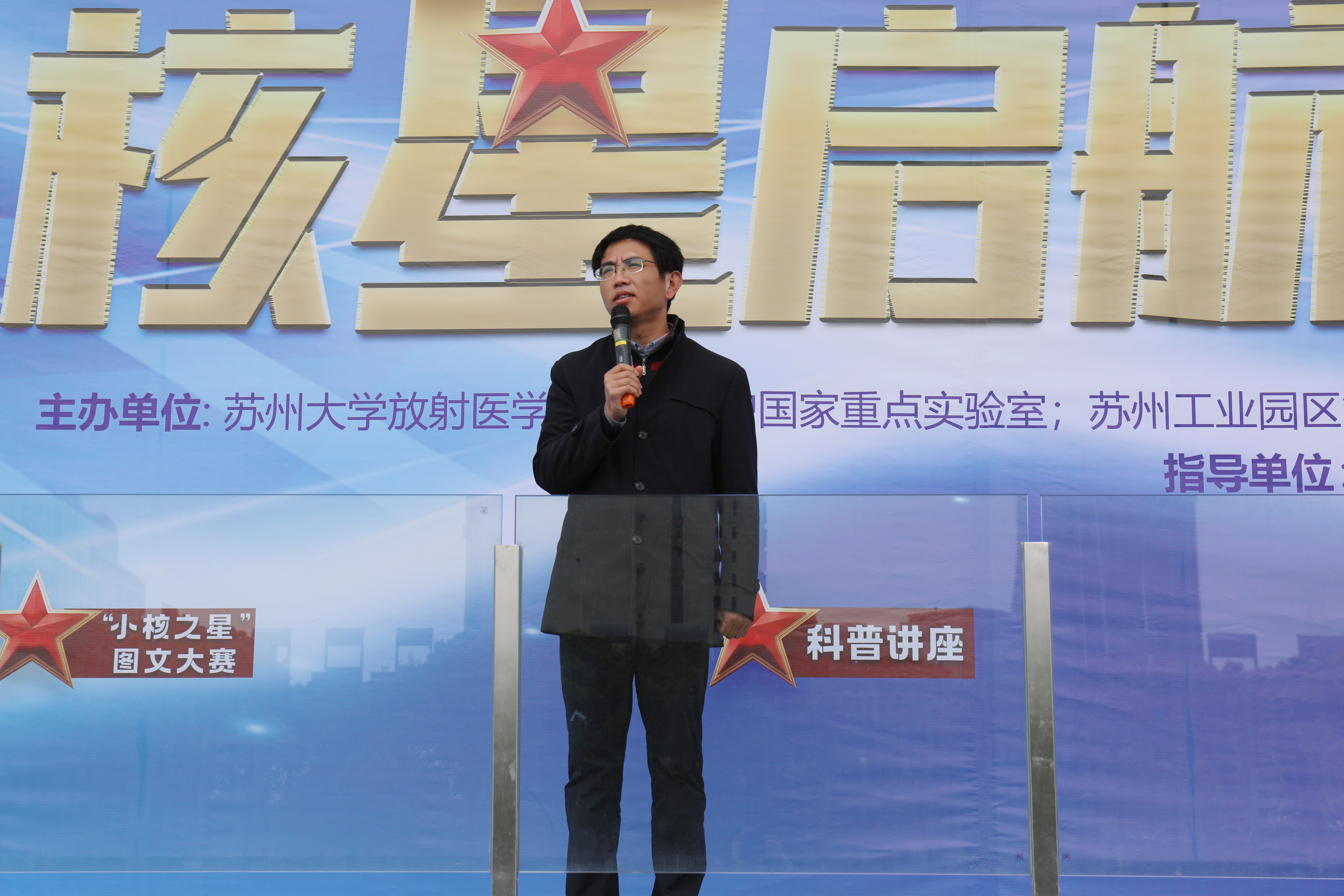 4月3日上午,由苏州大学放射医学与辐射防护国家重点实验室、苏州市工业园区第一中学共同主办的“核星启航”—国家重点实验室科学节系列活动在苏州工业园区第一中学隆重开幕,本次系列活动主要包括:小核之星科普图文大赛、院士专家科普讲座、科学小讲堂、“种子计划”科创实验、走进国重室等,系列活动将为期一个月。参加本次开幕式的有苏州工业园区第一中学校长赵小军,副校长王新奇,苏州大学苏州医学院党工委副书记、副院长孟玲玲,苏州大学放射医学与防护学院党委书记王成奎,国家高层次人才、苏州大学特聘教授胡士军、国重室综合办主任徐加英、科普骨干赵琳,工业园区第一中学1500余名师生共同参加。