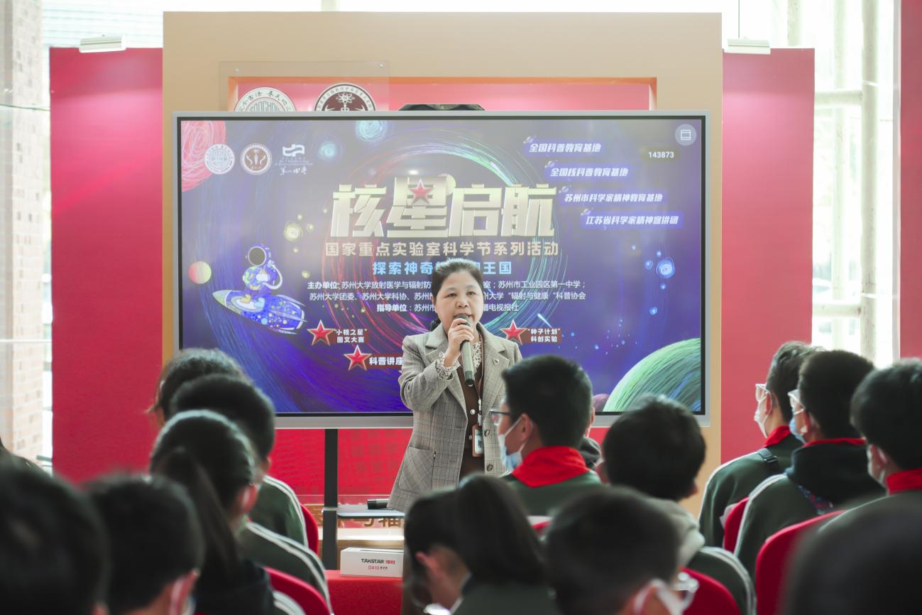 4月8日下午,“核星启航”—国家重点实验室科学节系列活动的重要内容之“走进国重室参观研学”,在苏州大学放射医学与辐射防护国家重点实验室科普教育基地顺利举行。参加本次活动的有苏州大学苏州医学院放射医学与防护学院副院长、国际宇航科学院通讯院士周光明,国重室综合办主任徐加英、科普骨干赵琳、段广新、崇羽、吴安庆、傅奕、马彬老师等,苏州市工业园区第一中学的52名师生代表,以及20余名辐射与健康科普协会和放射医学专业本科生党支部组成的大学生志愿者。本次活动由徐加英主任主持。