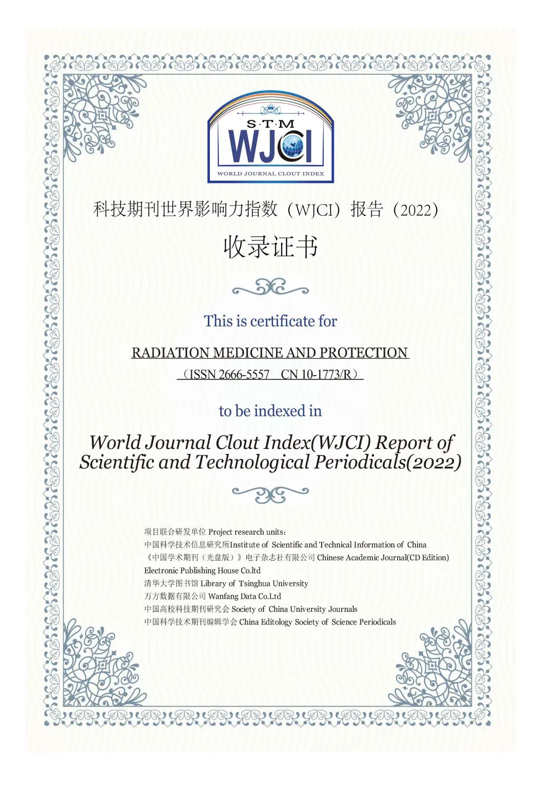 Radiation Medicine and Protection《放射医学与防护(英文)》被《科技期刊世界影响力指数(WJCI)报告(2022)》收录。