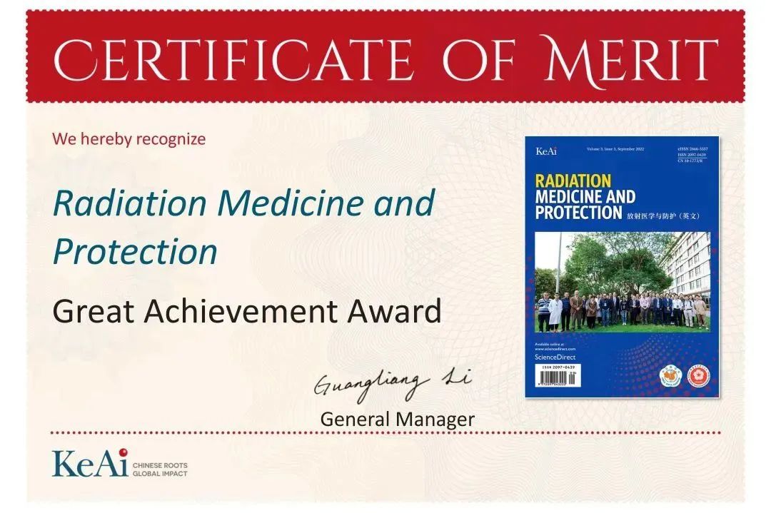 Radiation Medicine and Protection荣获“Great Achievement Award”
