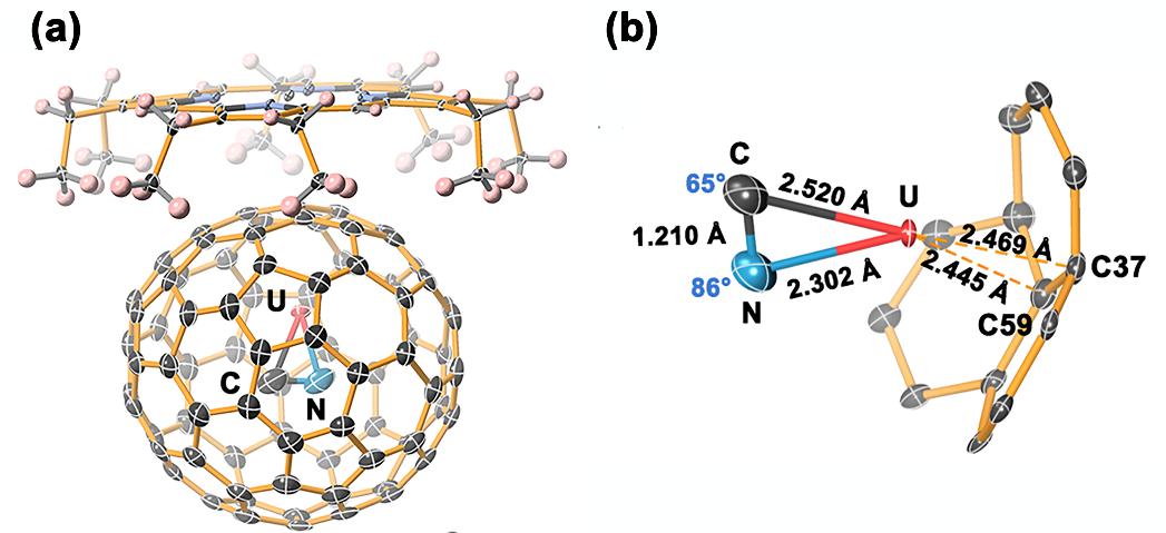 研究团队首先使用真空电弧放电法合成了一系列基于U的内嵌富勒烯,并通过HPLC分离纯化得到了内嵌氰化物团簇富勒烯UCN@C82。单晶X-射线衍射分析明确其分子结构为UCN@Cs(6)-C82。