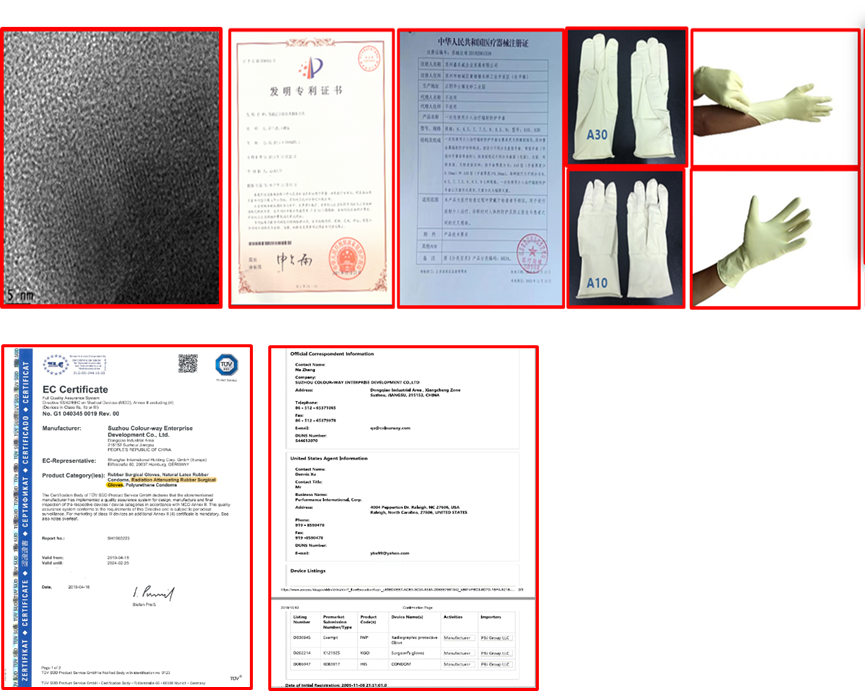 苏州大学放射医学与防护国家重点实验室许玉杰教授团队在系统研究各类防护材料辐射防护特性和交联成型的基础上,发明了新型防护手套技术和制作方法,获得国家发明专利,可用于介入治疗时放射性工作人员的手部皮肤的防护。通过成果转化,与苏州嘉乐威企业发展有限公司进行有效合作,研制成功了新型介入治疗辐射防护手套,能够降低临床介入诊疗人员手部皮肤的吸收剂量50%以上(超过0.025mmPb),同时又能满足他们手术时的精细操作要求。经过苏州大学附属第一医院、苏州市立医院(本部和东区)临床试用和改进,该手套已经获得国家二类医疗器械注册证书。该新型介入防护手套是我国第一个也是目前唯一一个获得二类医疗器械证书的一次性使用无铅、无菌介入防护手套,并且通过了欧洲CE认证和美国FDA注册。