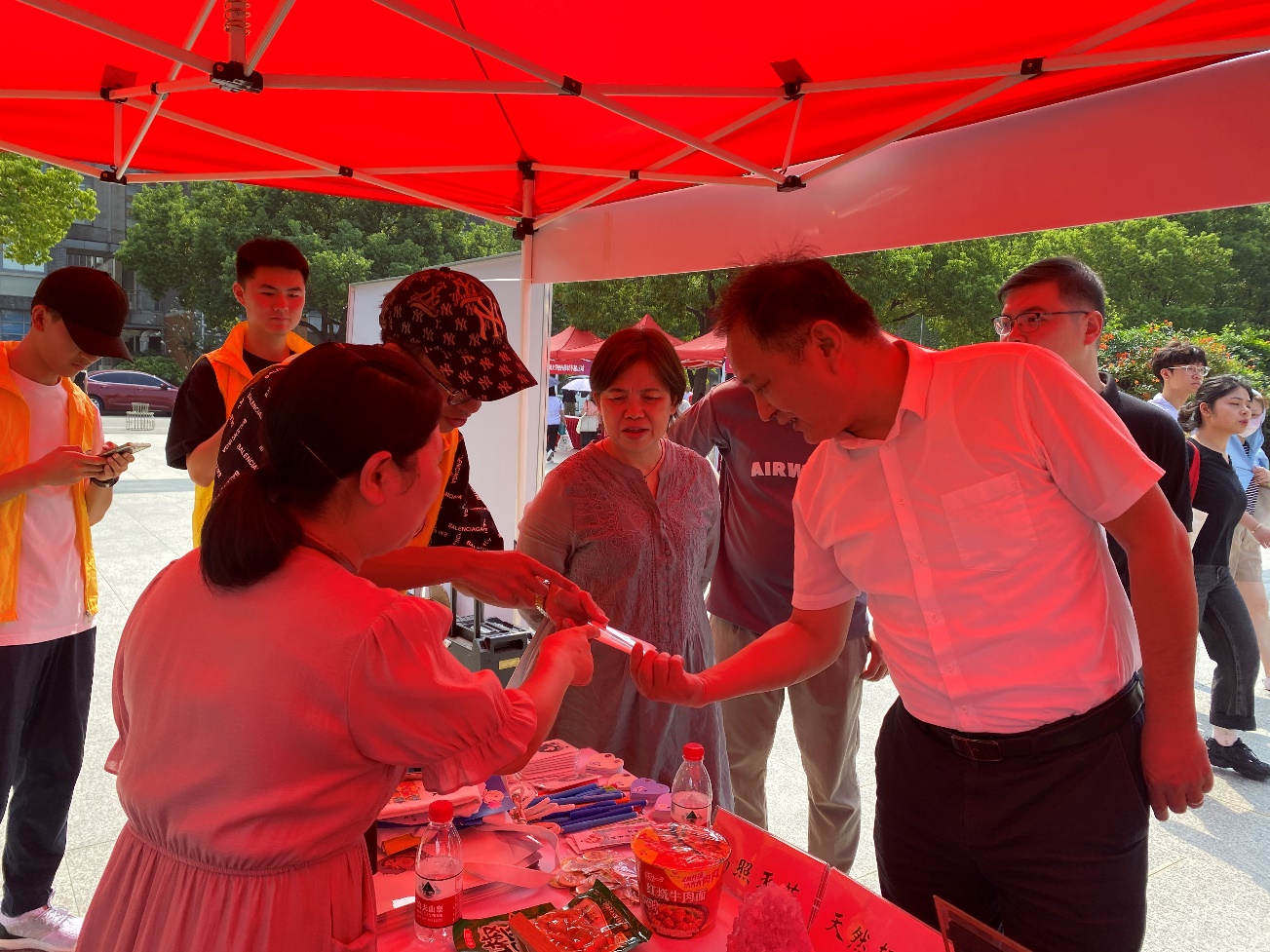 苏州医学院党工委书记钱福良与新生和志愿者交流