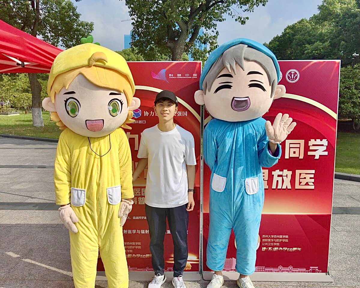 同时,科普吉祥物“氟氟、铀铀”闪亮登场,与24级小萌新们积极核科普知识互动,并给新生同学赠送由协会同学自主开发的文创纪念品,伴随着《放医DISCO》科普歌曲,同学们听得津津有味,纷纷和志愿者合影留念。