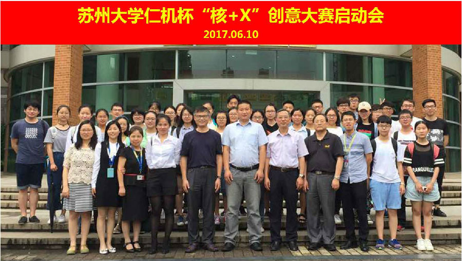 2017年6月10日,苏州大学医学部放射医学与防护学院和上海仁机仪器有限公司联合推进的全国高校学生“核+X”创意大赛苏州赛区启动会在苏州大学独墅湖校区举行。参加启动会的有上海仁机仪器仪表有限公司董事长李敬磊,仁机江苏分公司总经理郑翠;苏州大学医学部放射医学与防护党委书记曹建平、副院长许玉杰、“核+X”创意大赛苏大负责人涂彧教授、“核+X”创意大赛的指导老师以及33个参赛团队的同学。会议由曹建平主持。