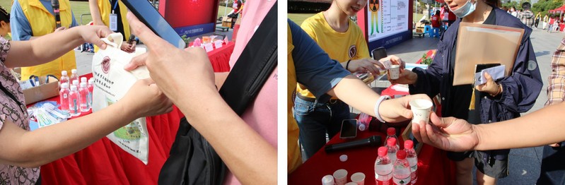 在富有创意的科普迎新现场,科普协会的志愿者向大家演示了普通矿泉水以及由国重室自主研发的低氘水,为手拖行李的新生和家长们送去一份凉爽。在休息饮水的同时,志愿者为大家介绍了二者的不同和低氘水的特点,让大家切实体会到了科技成果运用在提升人民健康的重要作用。