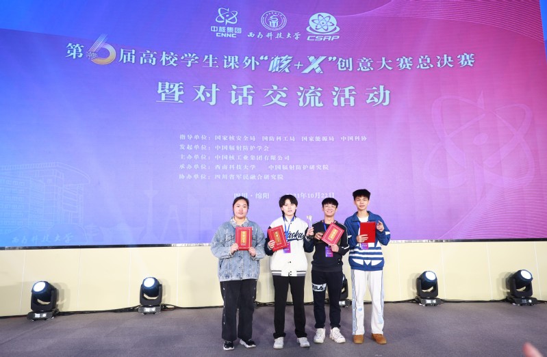 10月22日,由中国辐射防护学会发起,中国核工业集团有限公司主办,西南科技大学、中国辐射防护研究院承办的第六届高校学生课外“核+X”创意大赛总决赛暨对话交流活动,在西南科技大学举行。本届全国高校学生课外“核+X”创意大赛共收到41所高校学生提交的参赛作品223件,通过高校初评推荐作品66件,经大赛组委会专家评选出7件作品入围总决赛,参加一、二等奖的现场角逐。