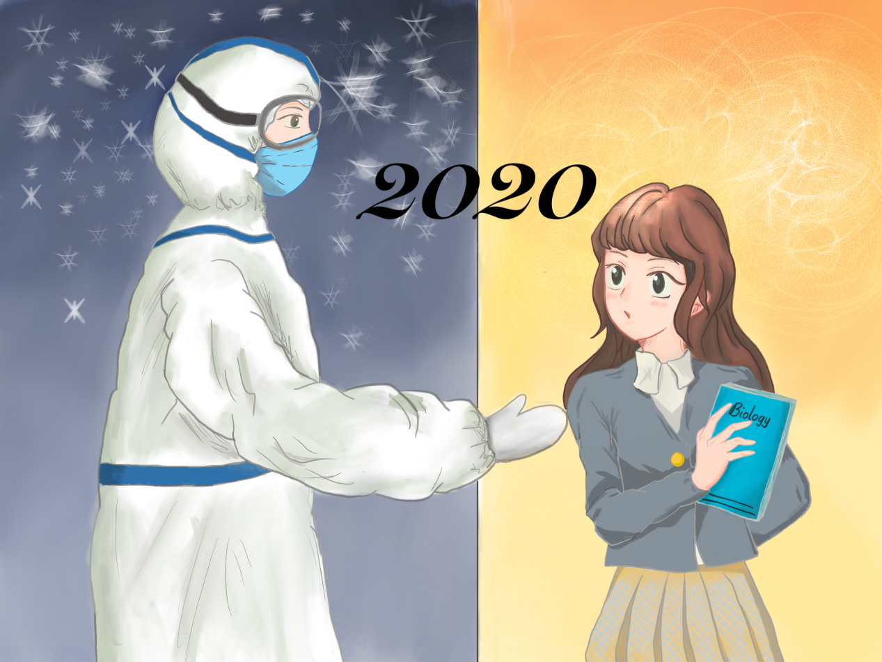 创作思路:2020年的春节因为一场疫情显得清冷,但是在医院这样的抗疫前线,一颗颗火热的心脏跳动着、奋战着。长夜未明,疫情黏稠有如混凝土一般包围着武汉,是前线的医护人员以肉体凡躯给患者们撑开了一个个生的缝隙,纵而粉身碎骨也前赴后继。医学生是抗疫前线的储备力量,对我们而言,责任不是我们念着“除人类之病痛,助健康之完美”这样的誓言就可以承担的,医学上的责任是我们搭上前辈的手,从心底愿意接受一代一代的接力传承。世界沧桑起伏,狂风骤雨不歇,但只要还有人站立着,奉献着,传承着,我们的民族就不曾倒下过,因而生生不息。