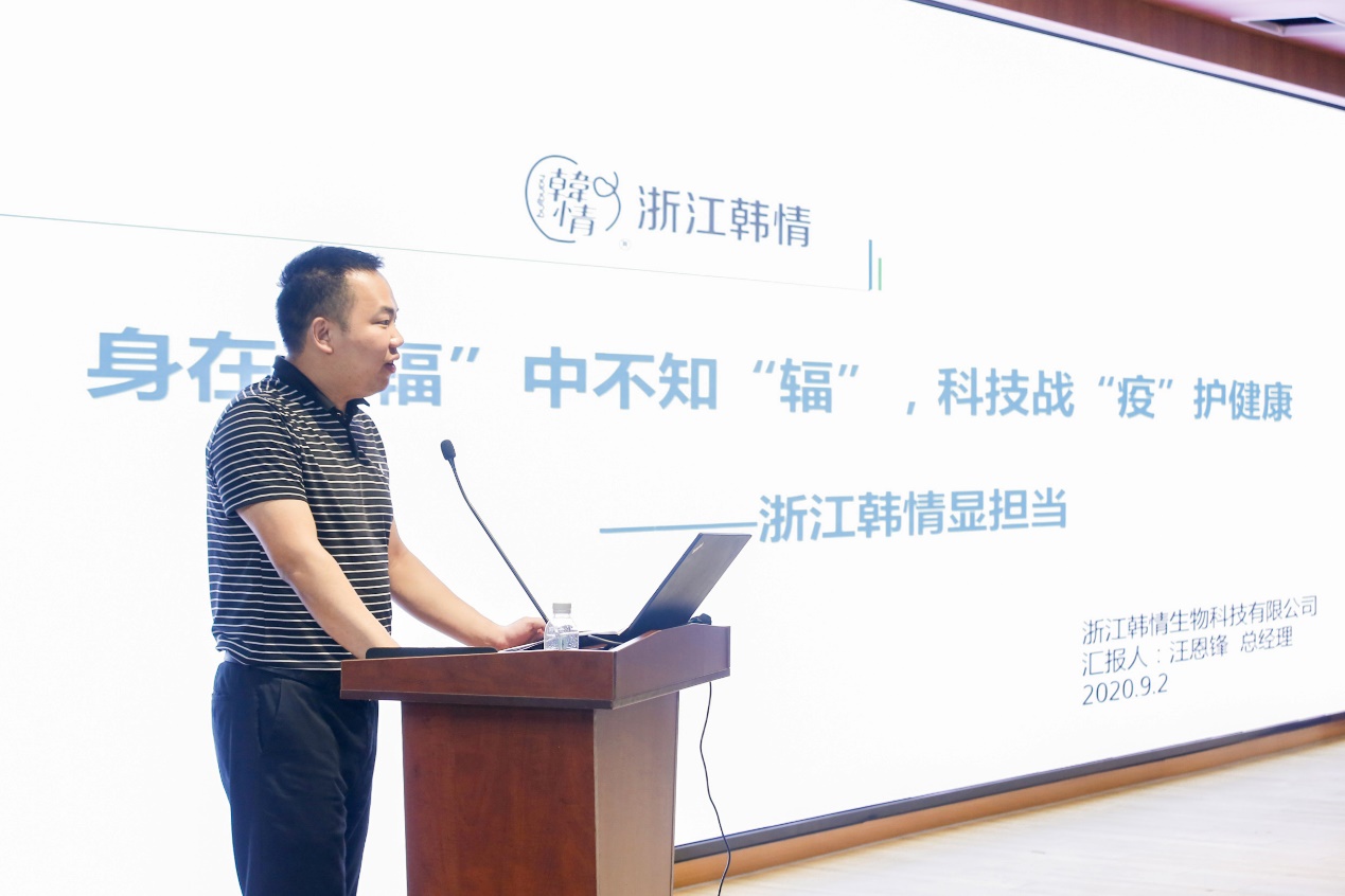 最后,企业代表韩情生物技术有限公司汪恩峰总经理就本次抗疫物资辐照灭菌作了专题报告。在今年的抗击疫情过程中,该企业利用辐照灭菌优势,展示了高科技企业的力量和企业家的担当。