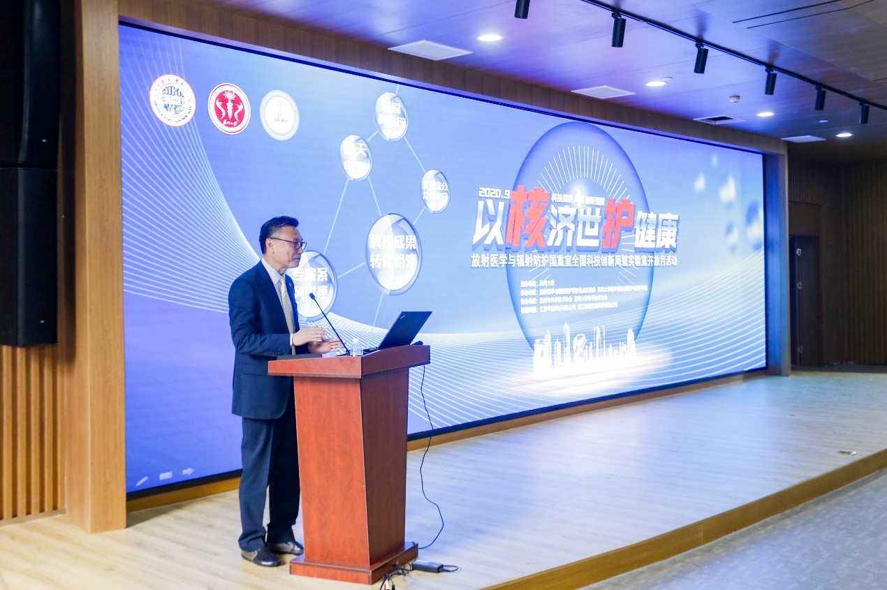 江涌书记在致辞中对省科协、市政协、市科协长期以来对苏州大学和国重实验室的关心和支持表示衷心感谢。他指出,今年是苏州大学建校120周年,学校一直以立德树人为根本,近年来坚持深化科技体制机制改革、不断激发创新活力,主动服务于国家战略和区域的重大需求,全面推进研究型大学的内涵建设,实现了内涵发展和高质量发展。重点实验室自成立以来,在柴之芳院士的带领下,建设成果丰硕,先后有多位学者入选爱思唯尔(Elsevier)发布“2018、2019年中国高被引学者(Most Cited Chinese Researchers)”榜单,今年又有青年学者王殳凹荣获第十六届中国青年科技奖,科普工作荣获省市科普基地。谈到下一步的建设发展,他希望国重实验室发挥交叉学科优势为放射医学学科建设以及未来交叉学科建设做贡献;发挥高层次人才集聚效应,继续推动学校师资队伍、科研队伍的建设;进一步发挥国家级平台作用,继续培育重大原创性科研成果。希望通过这次活动能够让更多的师生、公众走进科学殿堂,真正了解核不要畏惧核,感受科技创新的魅力。同时要多倾听企业的需求,提升实验室科技服务和科技创新水平,更好地用科技创新来帮助企业提质增效,为推动夺取疫情防控和经济社会发展双胜利做出应有的贡献。
