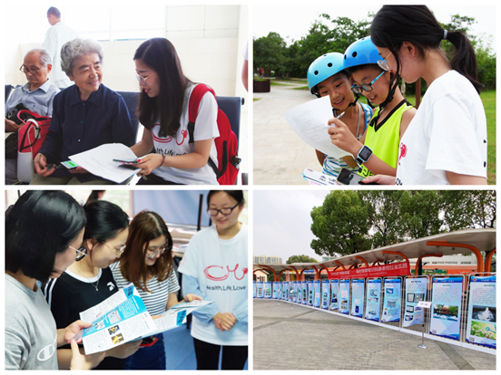 在社会公众辐射健康知识传播中,团队成员们走访了九龙医院、市立医院、尹山湖广场、湖东邻里中心广场、双湖湾社区、菁英公寓社区。在医院,团队成员们主要向医院内病人和家属进行了辐射知识科普、问卷发放等。而对于孕妇和儿童,队员们更感兴趣的是他们对于辐射危害的认知和防护辐射的具体措施;在广场和社区,队员在问卷调查之余,利用展板展架和指纹签到板对大众进行了详细的辐射知识科普。活动中,队员们以满腔的社会服务热忱,极高的社会责任感,参与了基层调查活动。