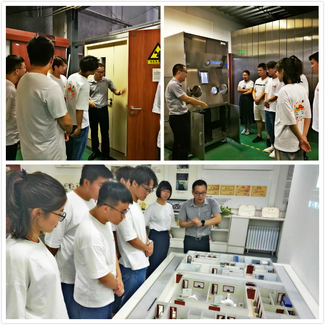 紧接着,张磊总监带领师生参观了公司展厅和生产车间,通过近距离的参观接触,同学们了解到了华克公司为医院放疗科以及核医学科设计的辐射防护方案,将书本所学与实际所用联系起来。参观了华克公司自主研发的超净台和医院防护门,对仪器的生产和功能有了更进一步的了解。