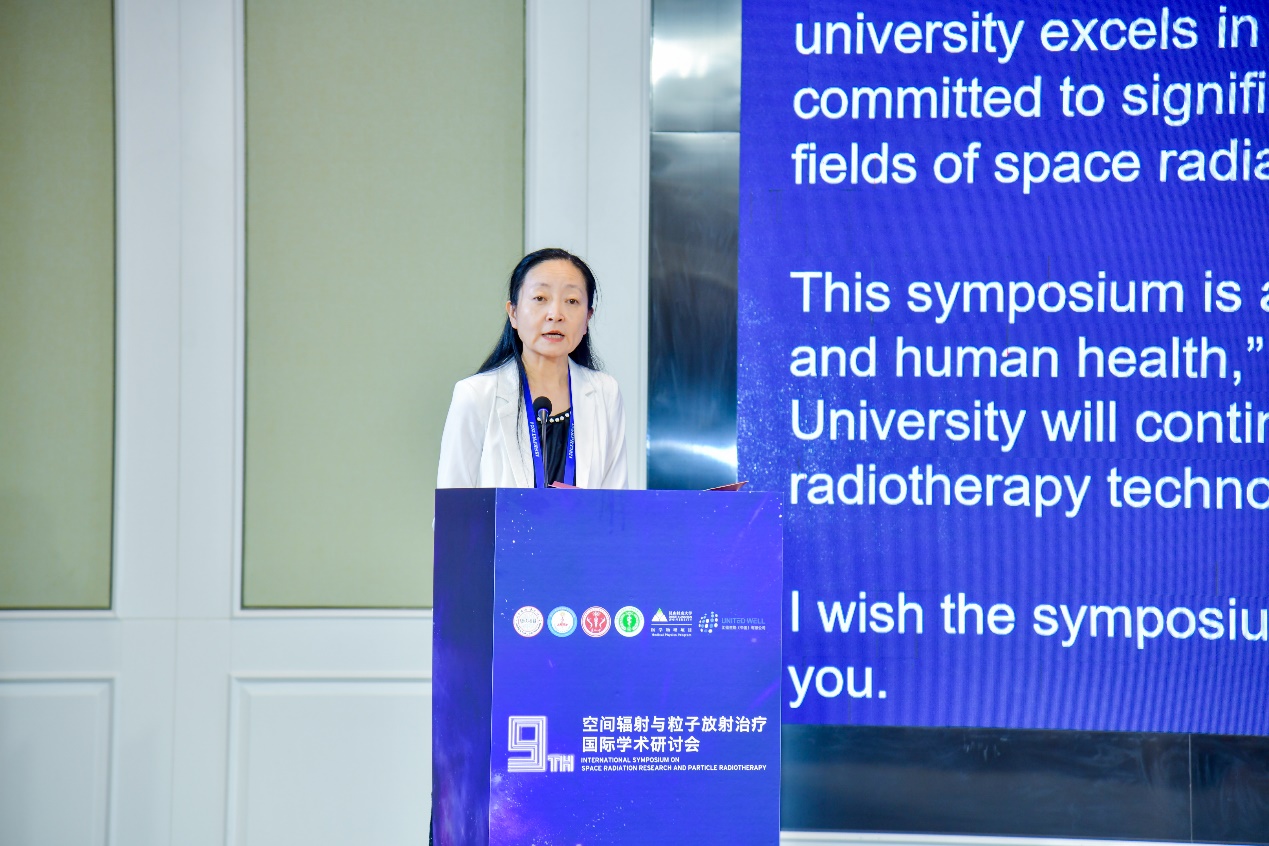 苏州大学副校长吴嘉炜教授致辞,她代表苏州大学,向会议的成功举办表示热烈祝贺,向各位领导、各国专家、学者的到来表示诚挚欢迎,向长期以来关心支持苏州大学建设发展的兄弟院校、合作企业和各位专家表示衷心感谢和崇高敬意。随后,吴校长详细的介绍了苏州大学苏州医学院的办学历史和沿革,并且给参会学者介绍了近年来苏州大学迅猛的发展势头。最后吴校长希望通过召开此次国际大会,与海内外兄弟院校、医疗机构和相关企业密切交流、加强合作,更深层次地探讨“粒子辐射与人类健康”这一有利于人类健康和社会发展的重要主题,不断深化空间辐射与放射治疗产学研结合,共同推动粒子放疗技术发展,并预祝大会的圆满成功。
