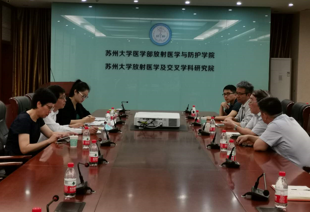 2020年9月20日,泰和诚控股美中嘉和医疗集团首席放疗专家傅深教授一行来访放射医学与防护学院,商讨共建苏州大学质子重离子研究中心事宜,负责接待的有放射医学与防护学院院长柴之芳院士、曹建平常务副院长、周光明副院长、院长助理俞家华和实验中心主任王敬东等。