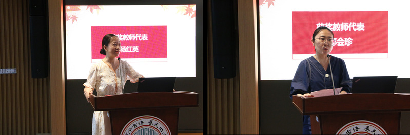 杨红英教授、郑慧珍副研究员作为获奖教师代表发言。杨红英教授在发言中谈到,将来会继续努力,戒骄戒躁、求真务实、守正创新,加快合作放射医学的科研成果向临床肿瘤治疗的转化。郑慧珍副研究员声情并茂的从自身科研经历着手与大家展开分享,最后她不忘鼓励在座学生,在学习和科研道路中应明确目标,百折不挠,耐住寂寞,不畏将来、不惧失败。