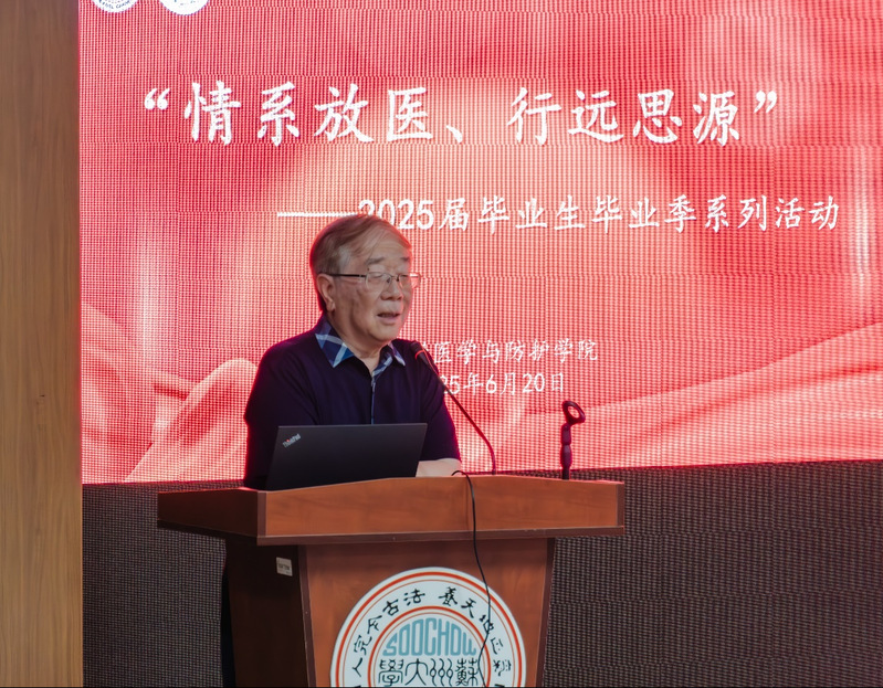 2025年6月20日下午两点,苏州大学苏州医学院放射医学与防护学院“情系放医、行远思源”2025届毕业研究生系列活动于苏州大学医学楼四楼学术报告厅举行。中国科学院院士、放射医学与防护学院名誉院长柴之芳教授,放射医学与防护学院党委书记王成奎,专职组织员王加华,国家重点实验室综合办公室主任徐加英,研究生秘书彭蓉,研究生辅导员周丹丹出席活动,学院2025届毕业研究生参与活动。活动由周丹丹主持。