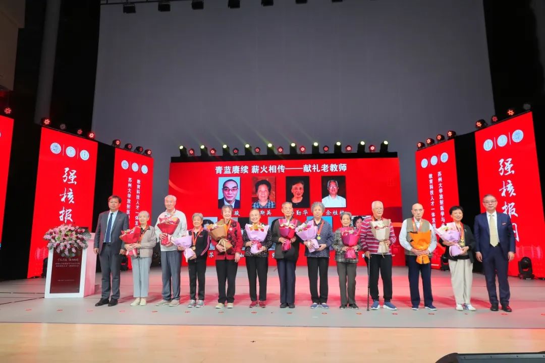 苏州医学院放射医学与防护学院执行院长曹建平作“至诚报国育人才”专题汇报,并和公共卫生学院党委书记芮秀文为老教师颁奖,以感谢他们服务核事业60年和为学院发展作出的积极贡献。