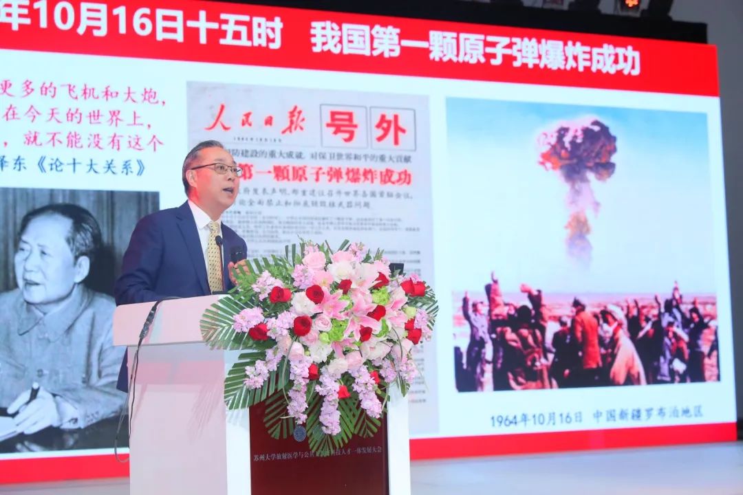 孙玺指出,今年是我国第一颗原子弹成功爆炸60周年,我国核事业的发展取得了举世瞩目的成绩。希望学院牢记使命,做核事业的守护者、核科普的传播者、前沿科学问题的探索者、学科建设的引领者和助力大国担当的践行者。国防科工局将与苏州医学院深化合作,共同推动产学研用协同发展,更好地服务国家安全和人民生命健康,为加快建设科技强国展现新气象、贡献新作为。