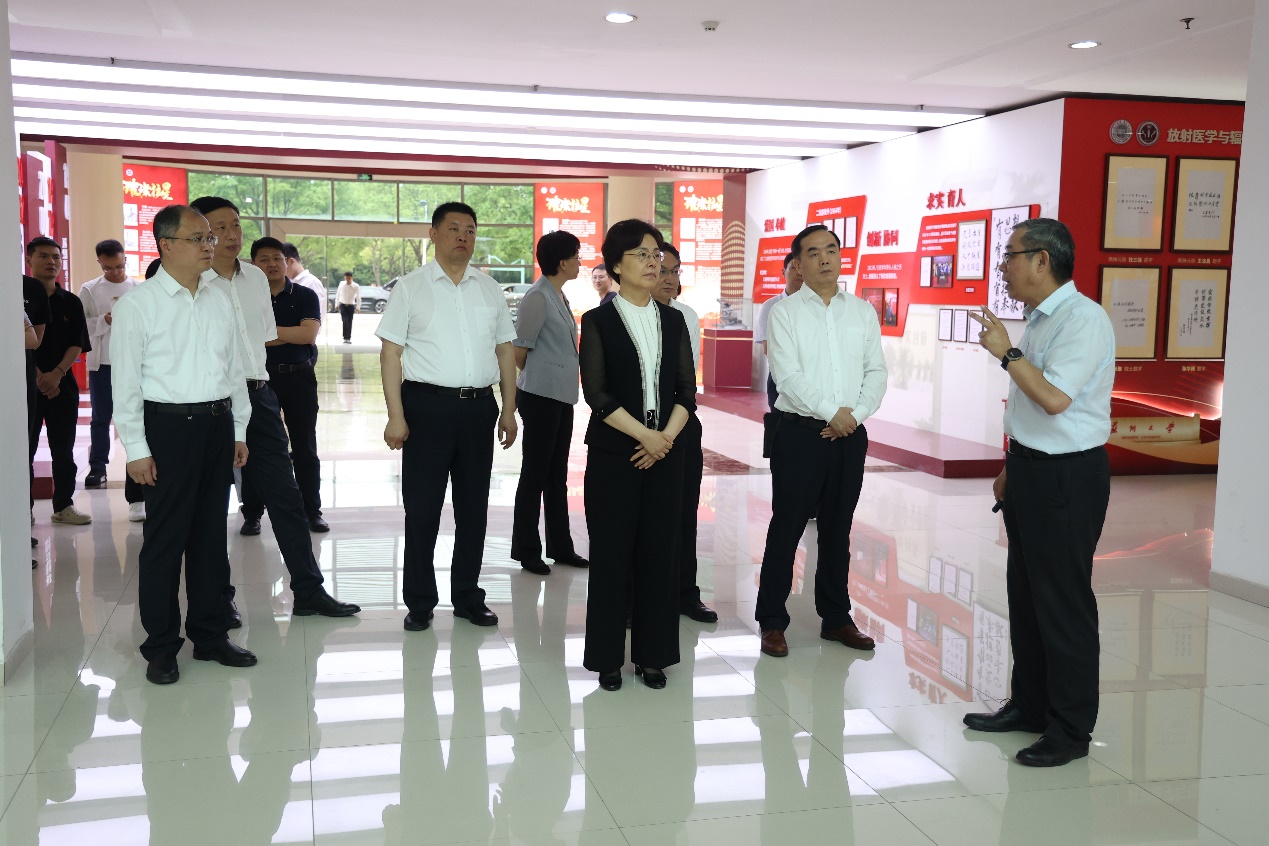 近日,江苏省副省长徐缨一行调研放射医学与辐射防护国家重点实验室。省政府副秘书长刘建、省教育厅副厅长顾月华、苏州市副市长周达清参加调研。我校党委副书记、校长张晓宏,党委副书记王鲁沛陪同调研。