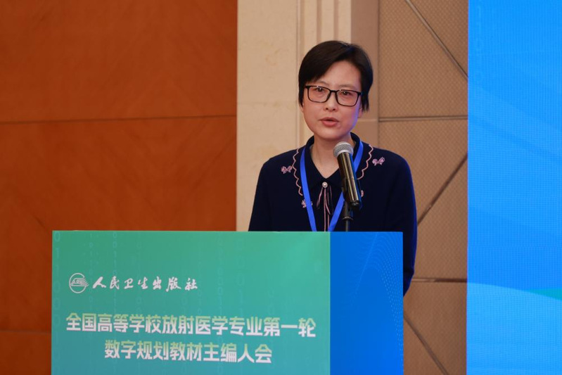 姚建林在致辞中首先欢迎各位领导、评审委员会与各位主编的到来,他指出在人卫社的主持和推动下启动了放射医学专业第一轮数字规划教材的编写工作,这是贯彻落实国家深化医学教育改革精神的重要举措,也是推动放射医学学科建设、提升人才培养质量的重要抓手。本次会议的召开,标志着我们迈出了放射医学数字化教材建设的重要一步,各位专家将积极探索数字化教材的建设模式,将传统教材与数字技术相结合,开发出更加生动、形象、互动的教材内容,并树立医学类数字化的样板教材。我们将进一步加强与各高校和专家的合作,共同推动放射医学专业教材建设和人才培养工作的发展,为健康中国建设贡献力量。