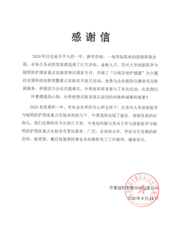 中美冠科生物技术有限公司是来我室进行检测的老客户,在与中美冠科的实验人员交流中得知,因为疫情的影响,他们公司国外实验室无法正常工作,很多客户的订单都转到国内来完成;同时也是疫情导致国内提供类似药效实验数据的小公司纷纷关闭,从而大型公司的实验任务骤增。我们提供的一个月免费仪器使用对他们来说是一件非常接地气切实的帮助。9月进行了三批次小鼠的照射,共计20.75h,通过这次活动为公司节省了24900元。他们表示非常感谢学校能为企业着想,后续会有带来更多的小鼠辐照项目。