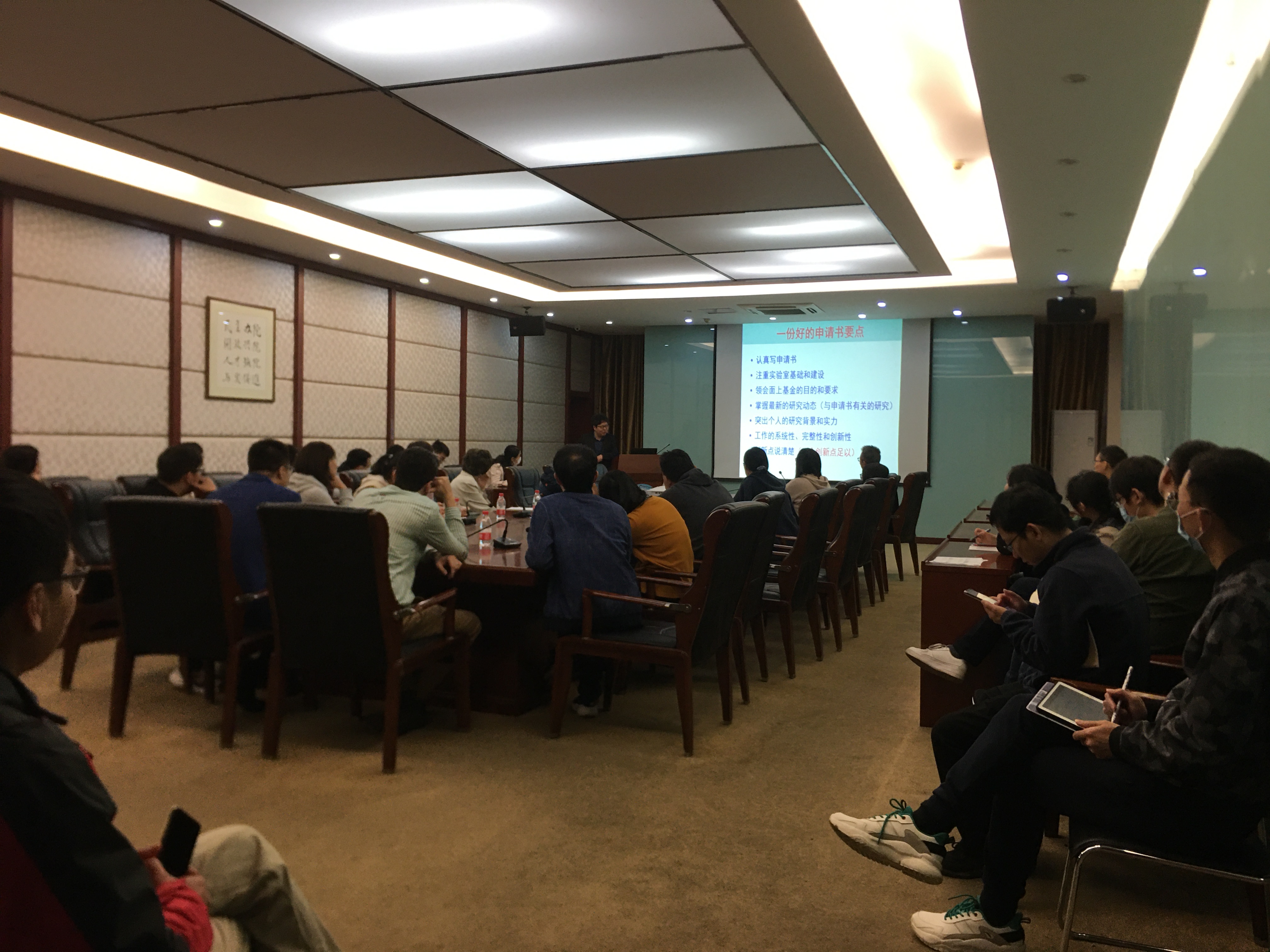 王殳凹教授从“认真写申请书、注重实验室基础和建设、领会面上基金的目的和要求、掌握最新研究动态、突出个人研究背景和实力、凝练好一个创新点”等几个方面展开,重点就如何撰写高质量基金申请书进行详细的阐述,分析了今年国自然项目申请和资助情况,指出项目书在申请和评审过程中存在的问题,以及如何有效解决问题。