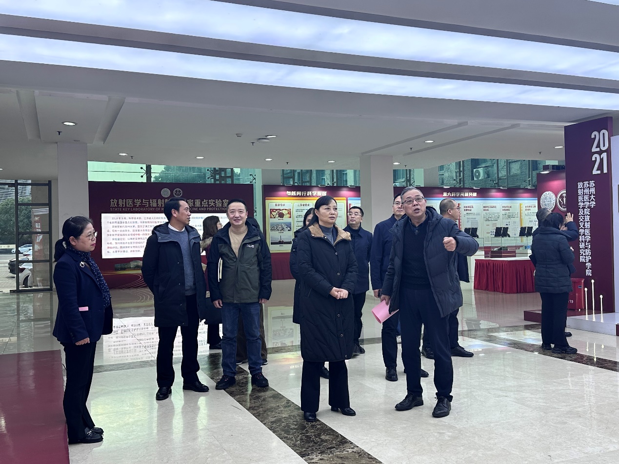 12月9日下午,四川省泸州市副市长罗素平一行来国重室考察交流,泸州市政府副秘书长曾泽兰,市医药健康产业发展局局长李正梁,江阳区委常委、区委办主任杨勰,泸县县委常委、副县长邓睿等参加;苏州大学副校长吴嘉炜,教务处副处长李慧,科学技术研究院副院长刘开强出席会议。泸州市相关部门、学校及企业负责人,放射医学与辐射防护国家重点实验及放射医学与防护学院负责人参加会议。会议由放射医学与防护学院党委书记王成奎主持。