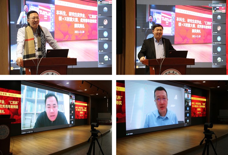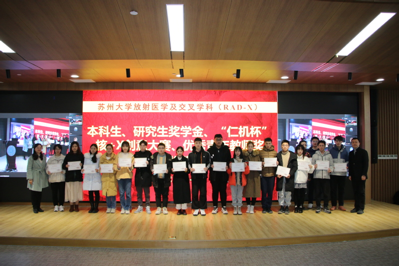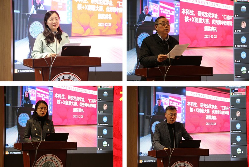2021年12月28日,我院举办放射医学及交叉学科(RAD-X)奖学金、企业奖学金、“仁机杯”核+X创意大赛、优秀青年教师奖颁奖典礼,颁奖采取线上线下相结合的形式。企业代表上海仁机仪器仪表有限公司副总经理徐一鹤、北京康普德医疗科技有限公司总经理冒苏、泰和诚集团副总裁贾汀、华克医疗科技(北京)股份公司总经理刘爱娣、浙江韩情生物科技有限公司总经理汪恩锋、中核安科锐(天津)医疗科技有限责任公司人力资源专员邹佳珍、苏州大学学生工作处副部(处)长段永锋、校团委副书记严韵致、苏州医学院党工委副书记黎春虹、放射医学与防护学院院长柴之芳院士、执行院长高明远教授、常务副院长曹建平教授以及获奖师生参加。颁奖典礼由学院党委书记王成奎主持。