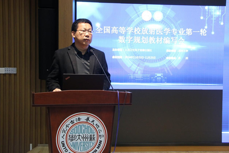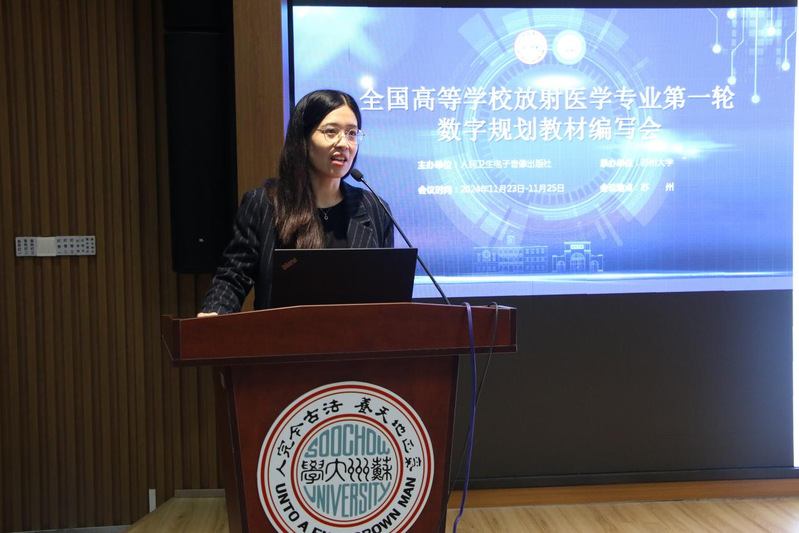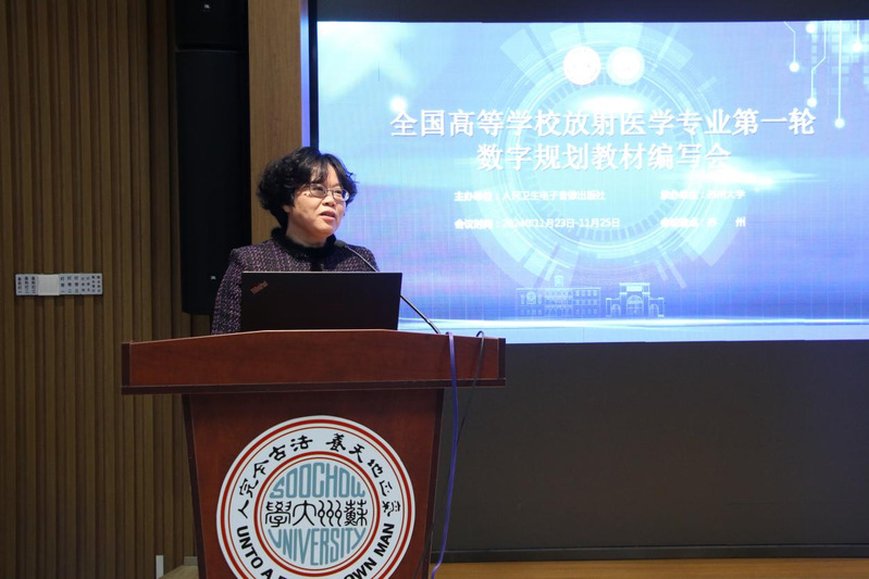 钟慧向远道而来的各位专家和编委表示热烈的欢迎。她指出,此次全国高等学校放射医学专业数字规划教材的编写工作,不仅是对苏州大学放射医学教育的一次全面梳理和提升,更是对我国放射医学人才培养质量体系的一次重要完善。苏州医学院高度重视此次教材的编写工作,并将其视为提升学校放射医学教育水平、推动学科发展的重要契机。要充分发挥全国放射医学领域最专业的师资队伍,以高度的责任感和使命感投入到本轮教材的编写工作中,为我国放射医学专业高素质、复合型一流人才的培养提供坚实有力的支撑。