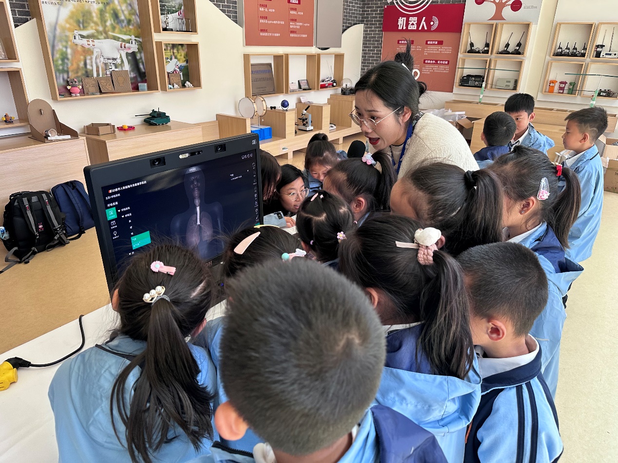 本次科技互动共设7大主题展区,分别是:人体结构认知展区、消化道认知互动区、人体胚胎及3D数字人展区、模式动物展区、神奇的细胞世界展区、科学家精神展区、核技术应用展区。同学们在科普志愿者老师的带领下,来到少年科学院参加科技展览活动。在人体结构认知展区,老师们向大家展示了人体骨骼标本和各部分组织结构,让同学们深入地了解人体的基本知识。