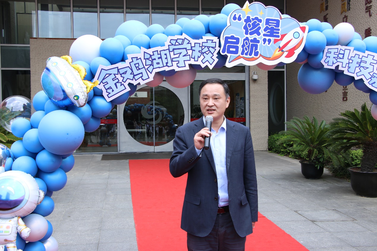 钱福良对金鸡湖学校对苏州大学科普工作的大力支持合作表示感谢。他指出,科技文化节等科普活动走进学校一线,能让科学普及和科技创新更好的深入人心,同时富有想象力和创造力的同学们也为科普工作的开展注入了新的活力,科技和文化的融合定会为同学们未来的成长之路增添别样的色彩。他祝愿同学们积极探索,拥有美好的未来。
