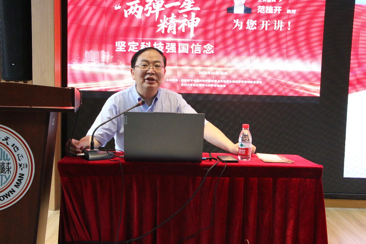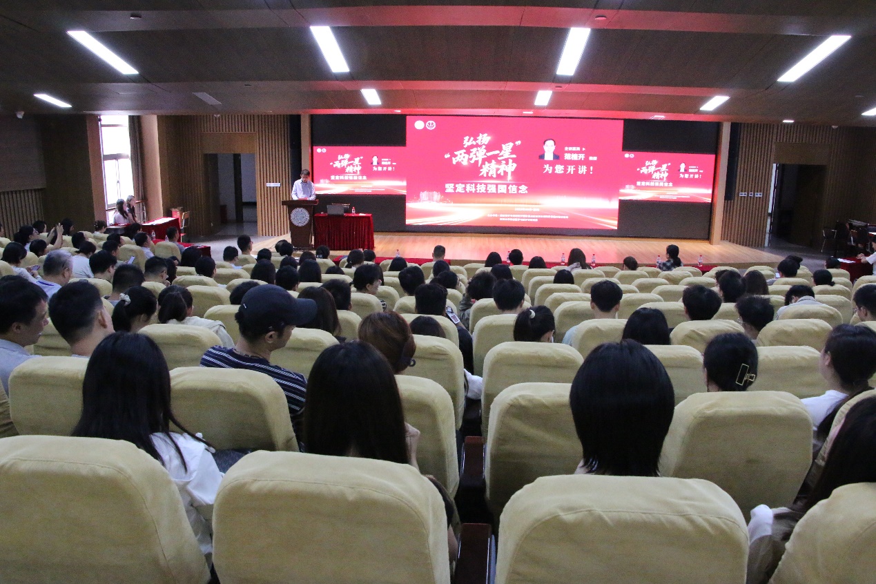 范植开教授以珍贵的视频和图文史料多种形式结合,生动讲述了我国两弹一星诞生发展的全过程,将历史与当下融会贯通,系统阐释了“两弹一星”工程对国家安全、外交地位、经济发展、人民生活的深远影响和重大意义;以两弹元勋邓稼轩、氢弹之父于敏、歼十总工程师薛炽寿等人的生动事例多角度阐释了“两弹一星”精神的丰富内涵;引用钱三强关于人才“红专矢量论”的观点多层次解释了新时代科技强国的时代呼唤,深刻论证了理想信念与科技报国的辩证关系,指出坚定政治方向与专业能力深度融合是攻坚克难的核心动力。他鼓励广大师生面向国家需求,赓续优秀传统,以战略眼光树立远大志向,担负时代赋予的责任,让行胜于言,为实现高水平科技自立自强贡献应有之力。