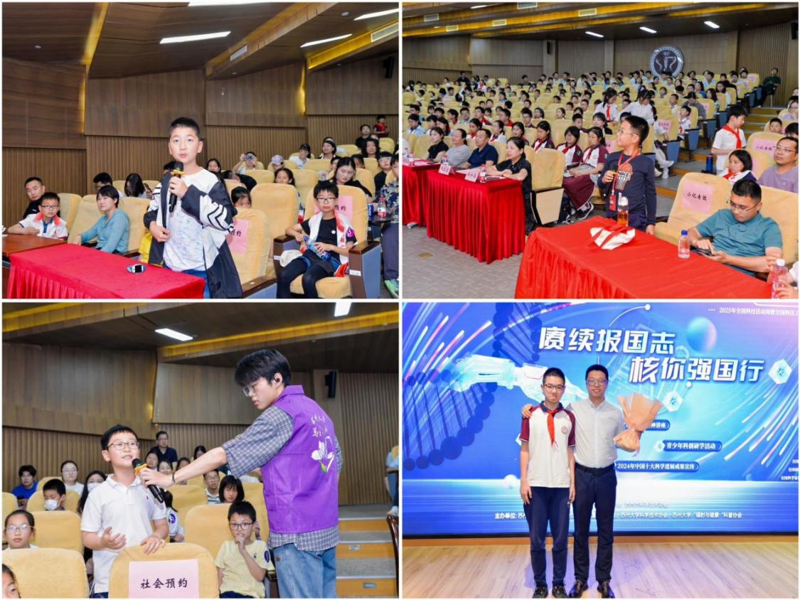 接着,王亚星教授为大家介绍了“中国科技十大进展之一——新型锕系辐射光伏核电池”的精彩讲座,他用浅显易懂、图文并茂的形式,为中小学生介绍了这种新型核电池的设计思路、应用前景等一系列知识。互动环节中,同学们踊跃举手提问,从 “核电池的安全性” 到 “未来生活中的创新应用”,问题一个接一个,现场掌声热烈,展现出对前沿科技的浓厚兴趣与探索热情 。