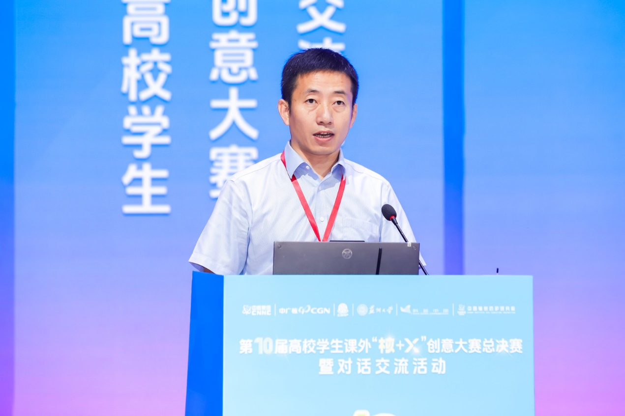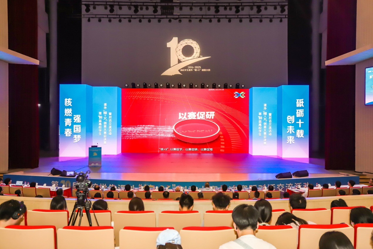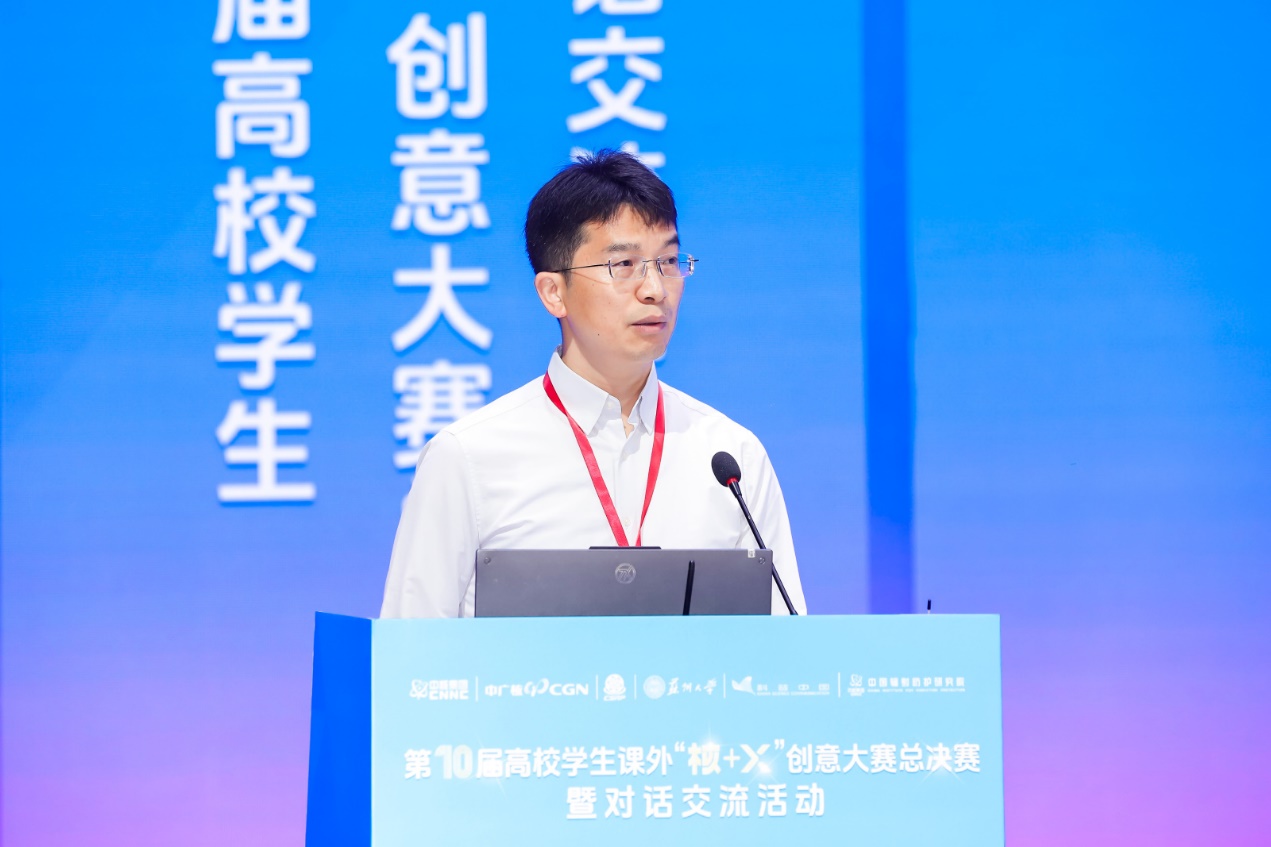 在首个全国科普月活动开展之际,9月14日,以“核燃青春强国梦 砥砺十载创未来”为主题,由中国辐射防护学会、教育部高等学校核工程类教学指导委员会发起,中国核工业集团有限公司、中国广核集团有限公司主办,苏州大学、科普中国和中国辐射防护研究院承办的第十届高校学生课外“核+X”创意大赛总决赛暨对话交流活动在苏州大学独墅湖校区恩玲艺术中心顺利举办。
