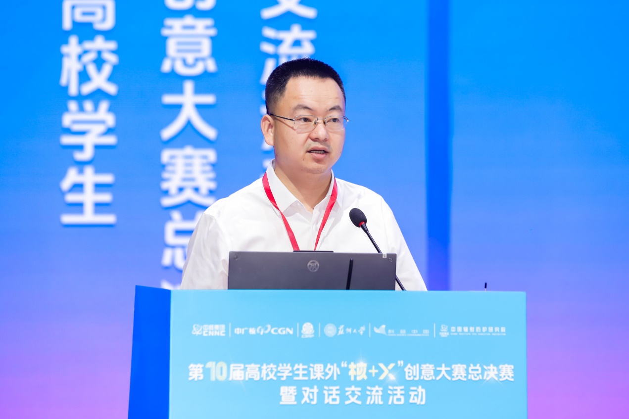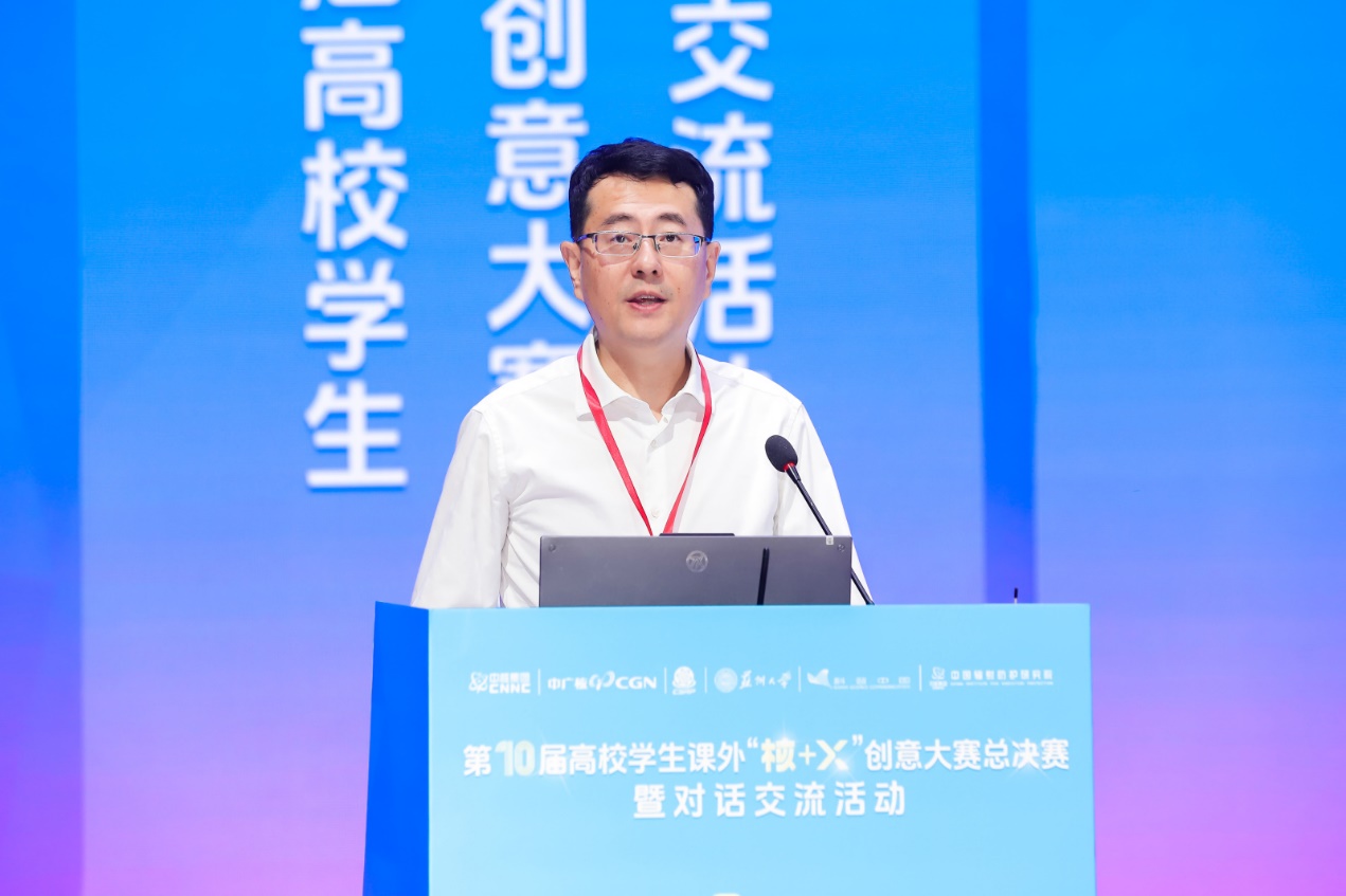 黄超指出,今年是核工业创建70周年,老一辈创业者铸就了“两弹一艇”的历史丰碑,从打破核垄断到守护民族尊严,从和平利用核能到发展清洁能源助力“双碳”目标,核工业始终与国家命运紧密相连。中广核高度关注青年群体创新创效工作,近年来与多所高校搭建了创新创效合作对接平台,希望同学们在“核+x”创意大赛的舞台上展示才华,树立强国报国情怀,将个人理想与国家强盛、民族复兴紧密相连,在服务国家发展大局中实现个人价值。