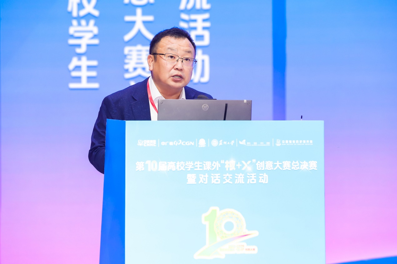 何高波在致辞中指出,“核+X”创意大赛作为中核集团6大科普品牌活动之一,已成为激发青年学生创新思维、培育科普新质生产力、展现核科技魅力、弘扬核工业精神的重要平台,“X”的边界不断被充满想象力的青春突破。当前,核科技的发展迎来新机遇,处在科技浪潮“Z世代”的青年学子是连接核科技和社会公众的最佳桥梁。希望大赛成为最强能量的核知识“播种机”和最可信赖的携手共进“连心桥”,为提升全民科学素养、推动强核强国建设作出更大的贡献。