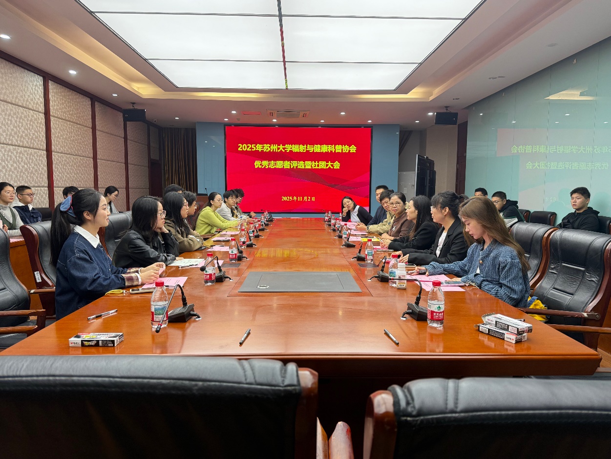 2025年11月2日,苏州大学“辐射与健康”科普协会年度优秀志愿者评选暨协会骨干聘任仪式在苏州大学独墅湖校区医学楼402栋一楼会议室举行。为保证优秀志愿者评选工作的专业性和公正性,评审规则为专家评委与协会骨干投票占比为70%、协会社团成员投票占比为30%。具体评委有放射医学与辐射防护国家重点实验室科普骨干教师徐加英、赵琳、盛道鹏、程侠菊、王子昱、岳凌、岳清玉教师组及第六届协会骨干组。本次会议协会有近60名同学参加了会议。会议由国重室科普骨干教师赵琳主持。