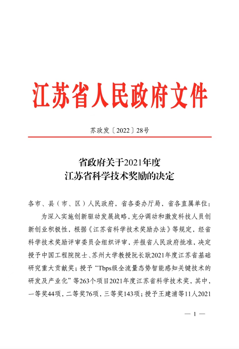 近日,江苏省人民政府发布了关于2021年度江苏省科学技术奖励的决定,国重室阮长耿院士荣获省基础研究重大贡献奖,是2021年度全省唯一获得该奖项。