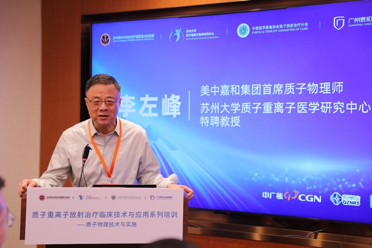 李左峰教授首先代表美中嘉和集团对大力支持本届培训班的主办方苏州大学放射医学与辐射防护国家重点实验室、苏州大学质子重离子医学研究中心、中国医学装备协会离子放射治疗分会表示诚挚的感谢,向百忙中拨冗前来的专家、教授、讲师表示诚挚的敬意,对慷慨赞助本次培训的企业——中广核医疗科技(绵阳)有限公司、陕西秦洲核与辐射安全技术有限公司、亿比亚(北京)粒子加速器技术有限公司表示衷心的感谢,对参加本次培训的每一位学员表示热烈的欢迎。他表示,近些年来,质子重离子治疗在中国发展迅速,患者数及治疗中心不断增加,成为肿瘤放疗发展的一个热点,而医学物理师作为专业技术人员,早已成为放疗领域不可或缺的存在,但是国内现阶段物理师的数量却难以满足放疗需求,缺口巨大,与医学物理师相关的专业培训与认证体系亟待完善。凭借国际领先的Probeam质子治疗系统以及由国内外知名专家组成的实力雄厚的医疗团队,美中嘉和集团经过多年的实践与探索,在质子治疗领域形成了技术先进、经验丰富等优势,已发展成为推动国内质子治疗领域发展的主要引擎之一。为了给全国放射治疗行业从业者提供系统培训,助力培养我国放射治疗行业领军人才,美中嘉和集团开展“质子重离子放射治疗临床技术与应用系列培训”,此系列培训第一期于今年4月成功在苏州大学举办。系列培训第二期的主题定为“质子物理技术与实施”,独特之处在于史无前例地采用理论结合实践的全新教学模式,让学员不仅可以在课堂上学习专业的理论知识,还可以进行上机操作,充分调动学员的学习积极性。未来系列培训将从同时从不同的教学方向,向不同岗位的学员包括但不限于放疗医生、物理师、剂量师、工程师、技师、护士、工程建设人员、管理人员等提供专业培训。最后,李左峰教授预祝本次培训取得圆满成功,预祝学员们学有所成。