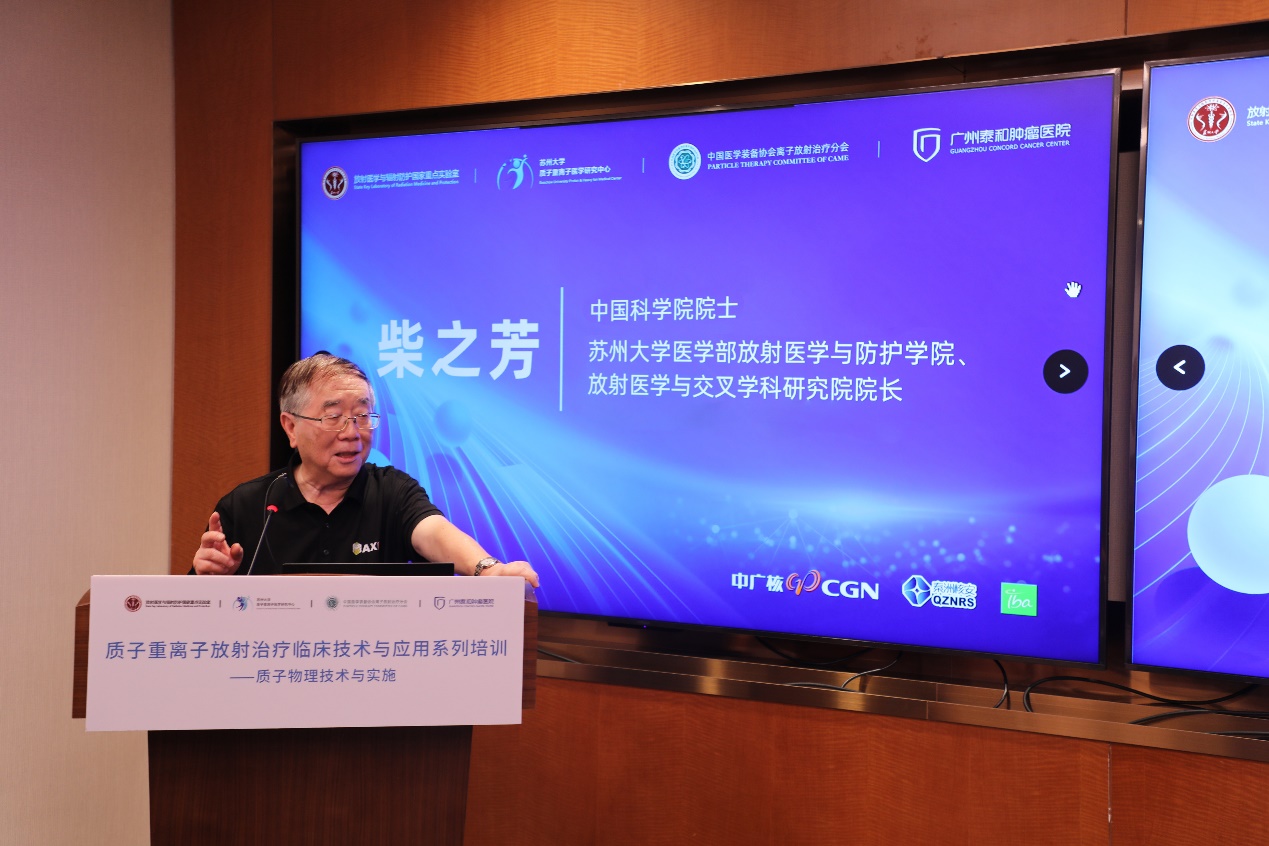 开班仪式上,中国科学院院士、苏州大学放射医学与防护学院院长、放射医学及交叉研究院院长柴之芳、美中嘉和集团首席质子物理师李左峰向广大学员及参会者致辞。
