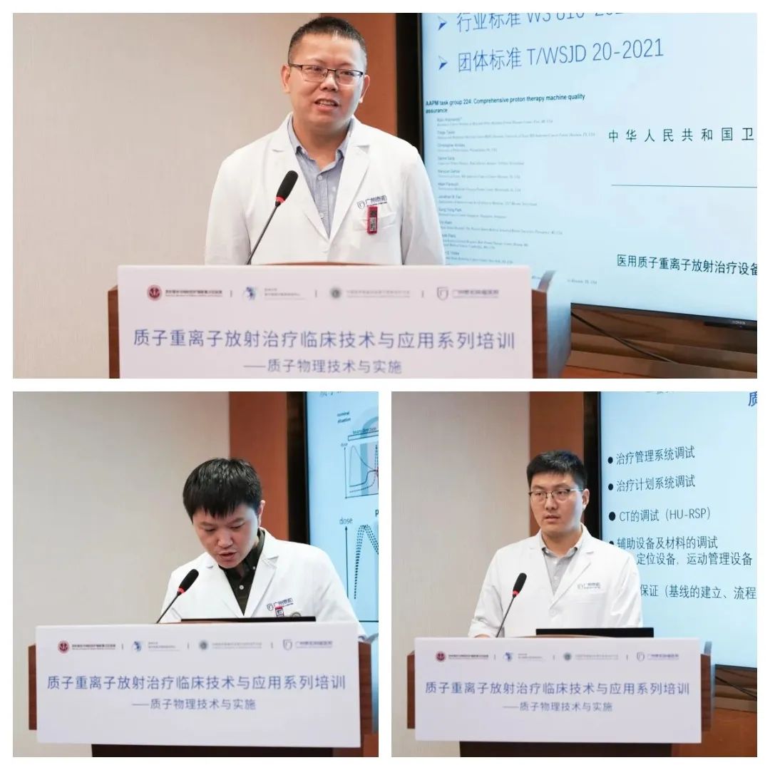 广州泰和肿瘤医院放疗科杨义峰、广州泰和肿瘤医院放疗科贾亚军、广州泰和肿瘤医院放疗科李章民分别以“CT值与质子相对阻止本领的转化”、“质子计划系统的临床调试”、“质子放疗系统的周期性质控”为主题进行了授课。